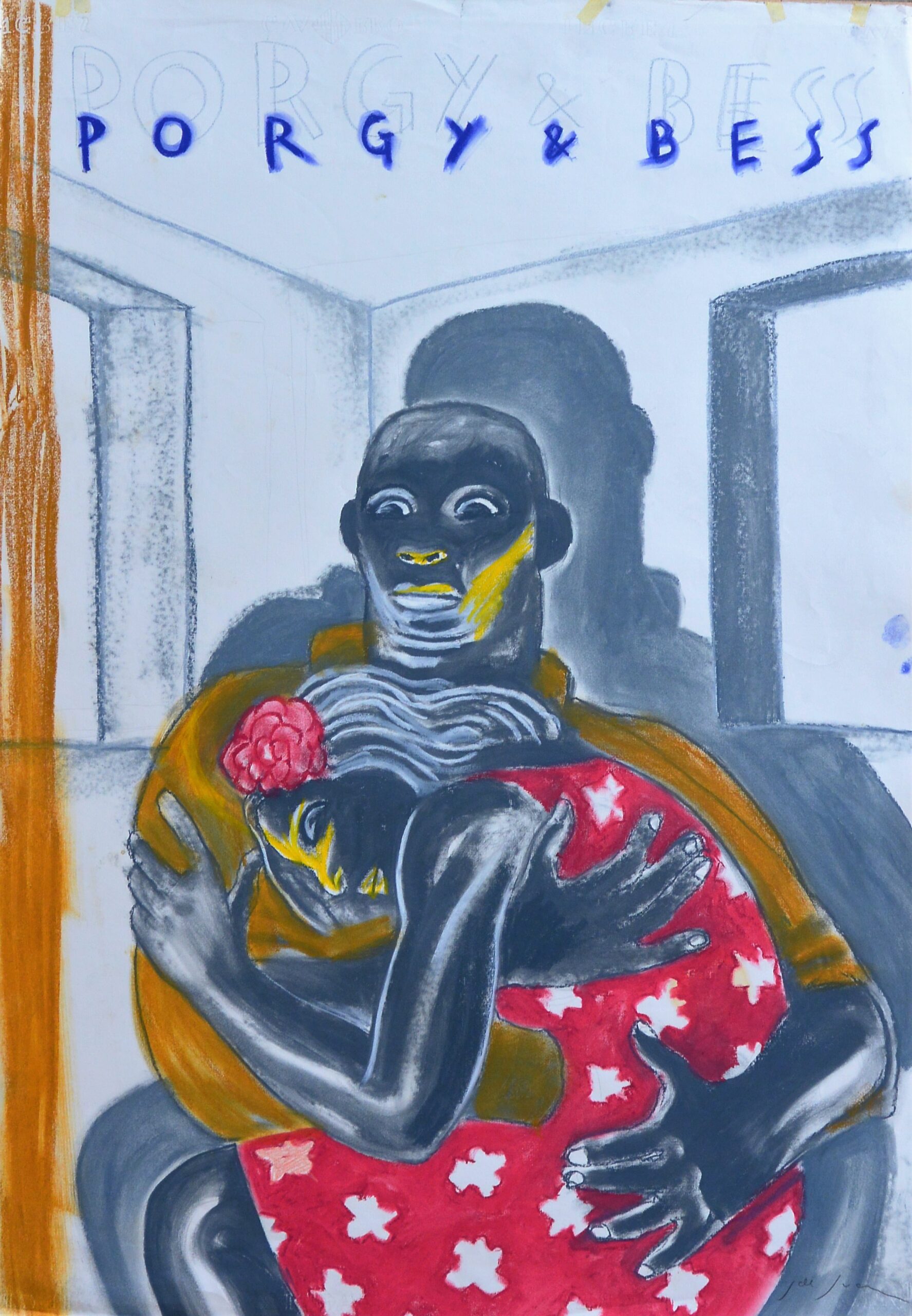 Javier de Juan, Porgy & Bess, dibujo original técnica mixta papel, preparatorio para el poster de la ópera en el Teatro Real, 100×70 cms.