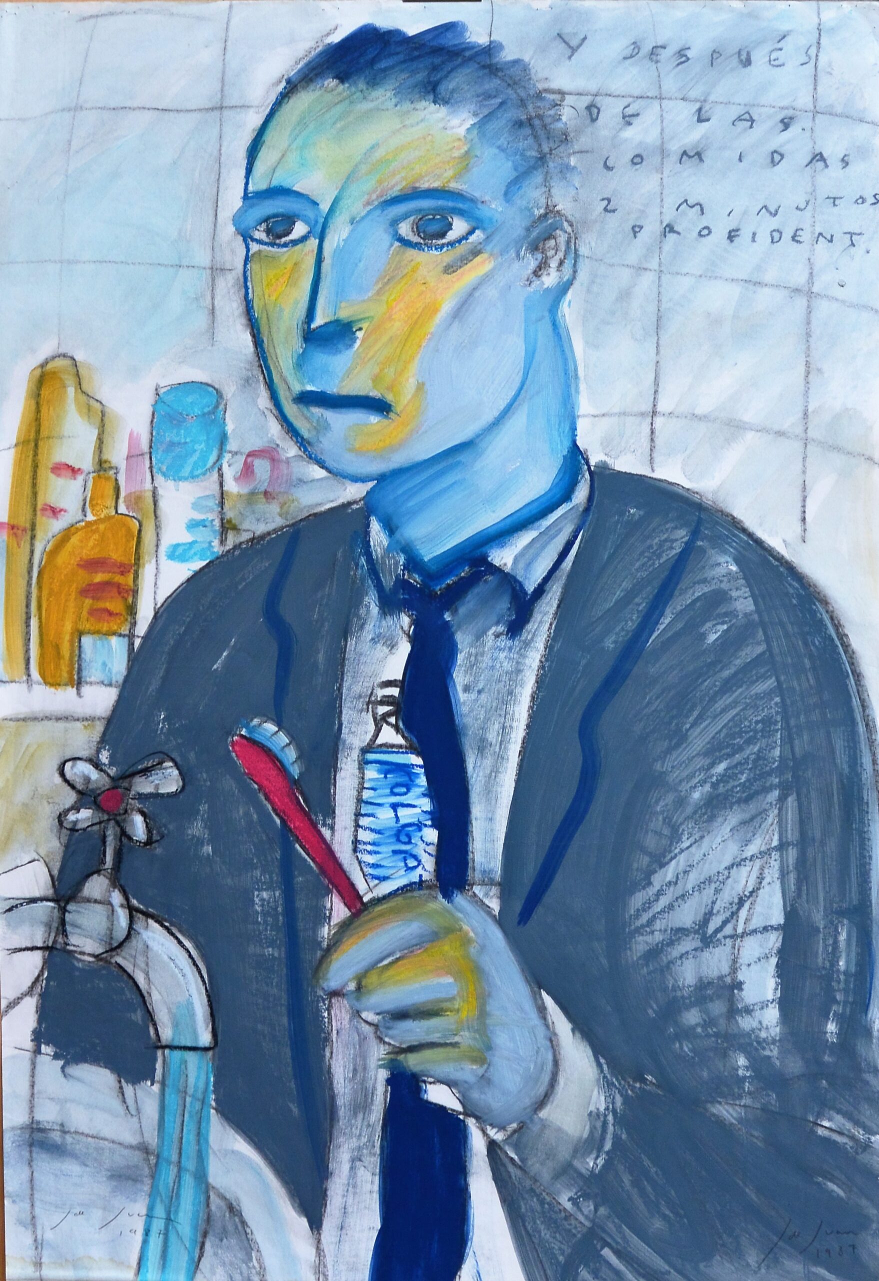 Javier de Juan, Y después de las comidas…, dibujo original técnica mixta papel, 100×70 cms.
