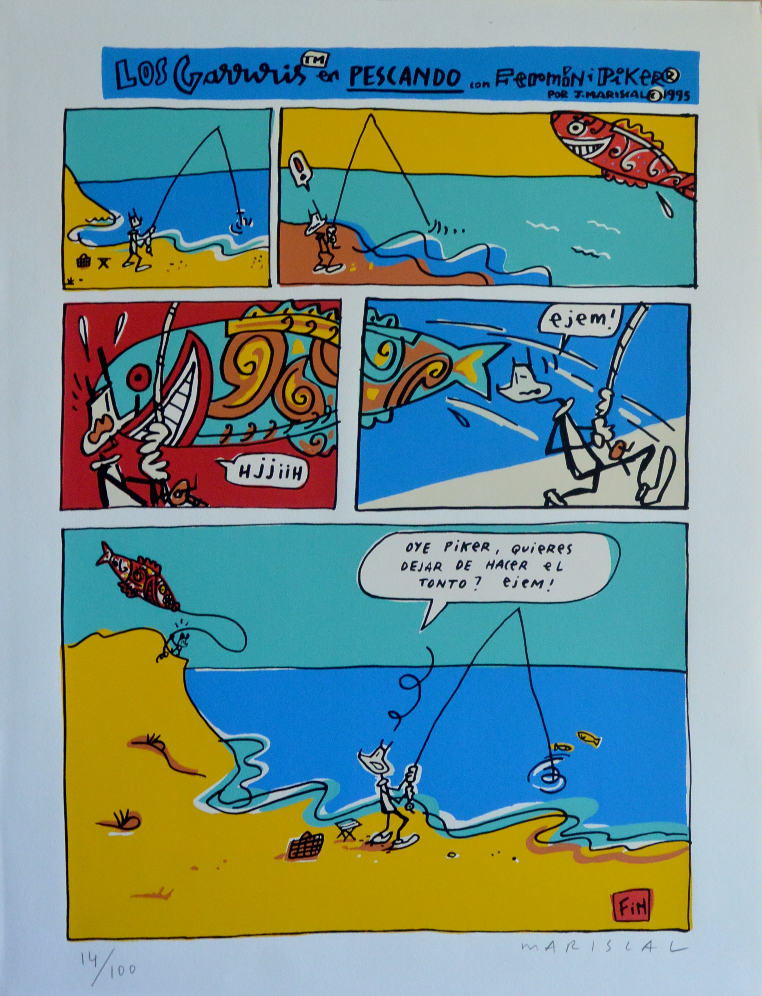 Javier Mariscal, Los Garriris pescando, serigrafía, edición 100 ejemplares, numerado y firmado a lápiz, 65×50 cms.