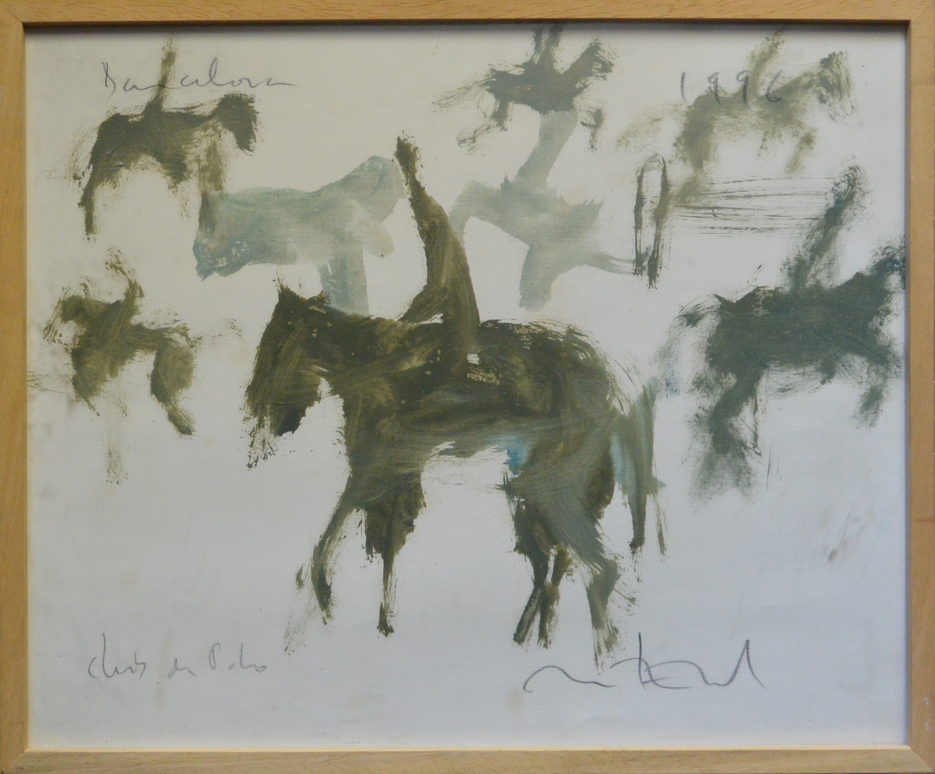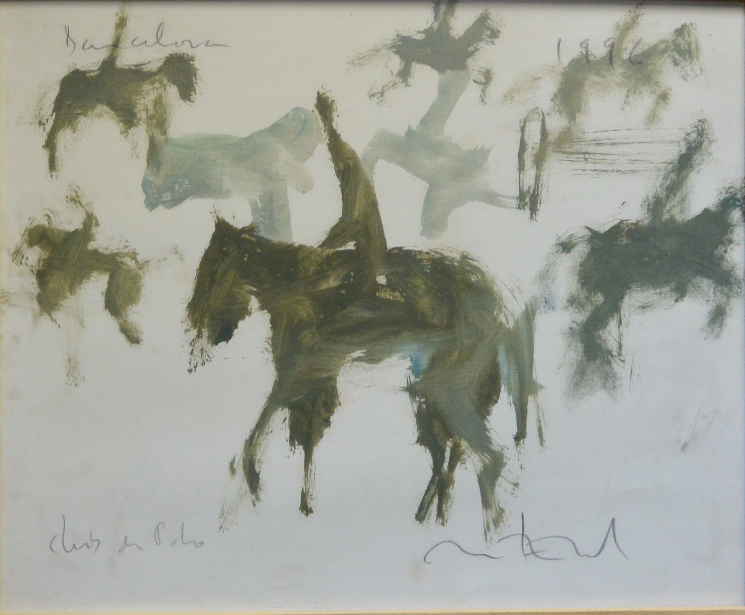 Javier Montesol 1996, Club de Polo, dibujo acuarela papel, enmarcado, dibujo 41×50 cms. y marco 43×52 cms.