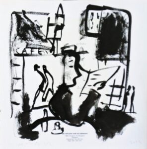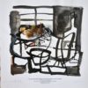 Javier Montesol, Lectura en la terraza, dibujo original acuarela sobre página de catálogo de grabados de Picasso, 28×27,50 cms.