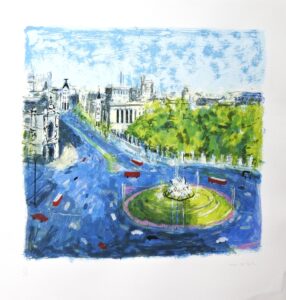 Javier Montesol, Madrid, Plaza de la Cibeles, serigrafia, edición 100 ejemplares, numerado y firmado a lápiz, 92×89 cms.