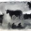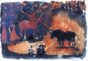 Javier Montesol, Plaza sombría, dibujo original acrílico sobre cartulina, 38×56 cms.