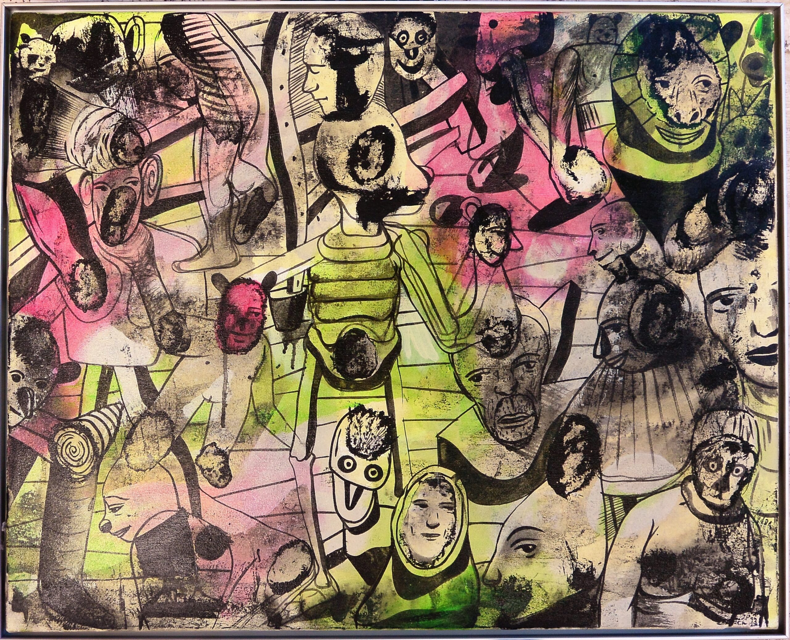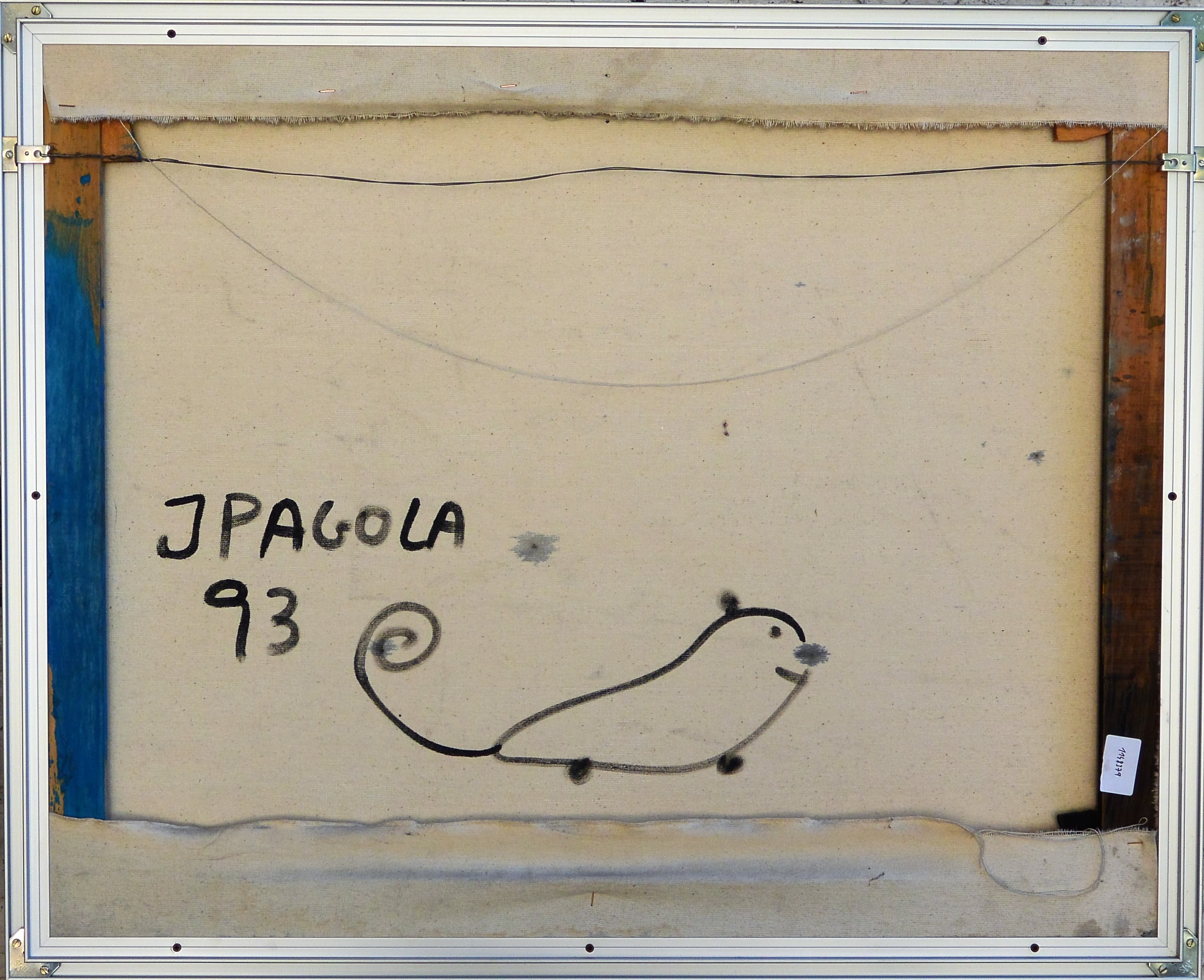 Javier Pagola 1993, Personajes, oleo lienzo, 65×81 cms. Enmarcado. DORSO