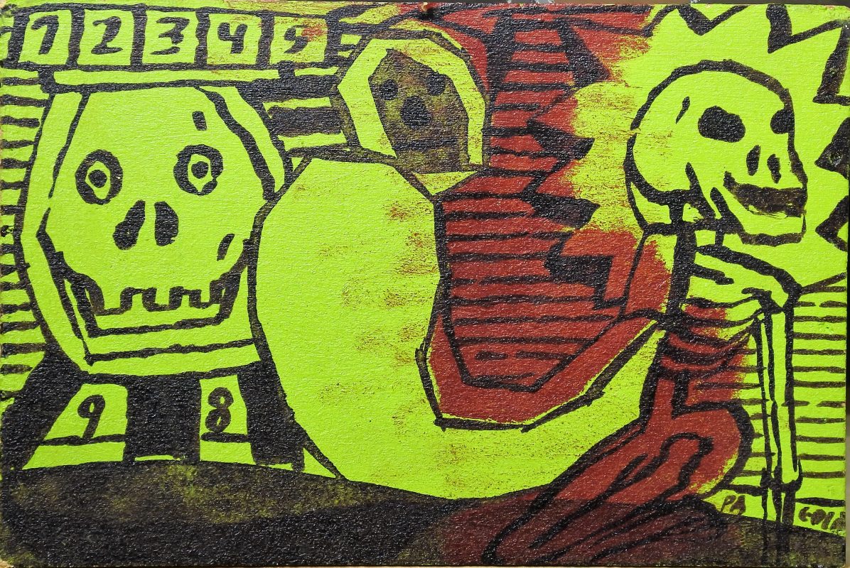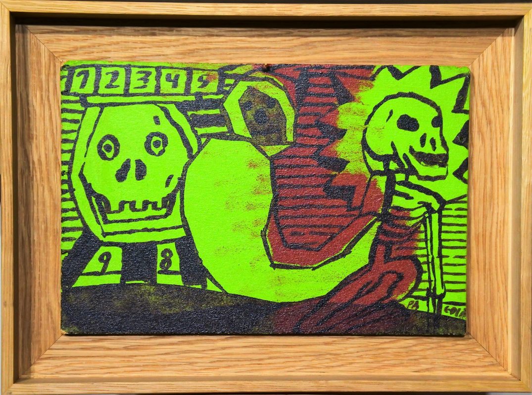 Javier Pagola 1998 , Pesadilla premonitoria, pintura oleo tabla, enmarcado, pintura 18,50×28 cms. y marco 26×35,50 cms.