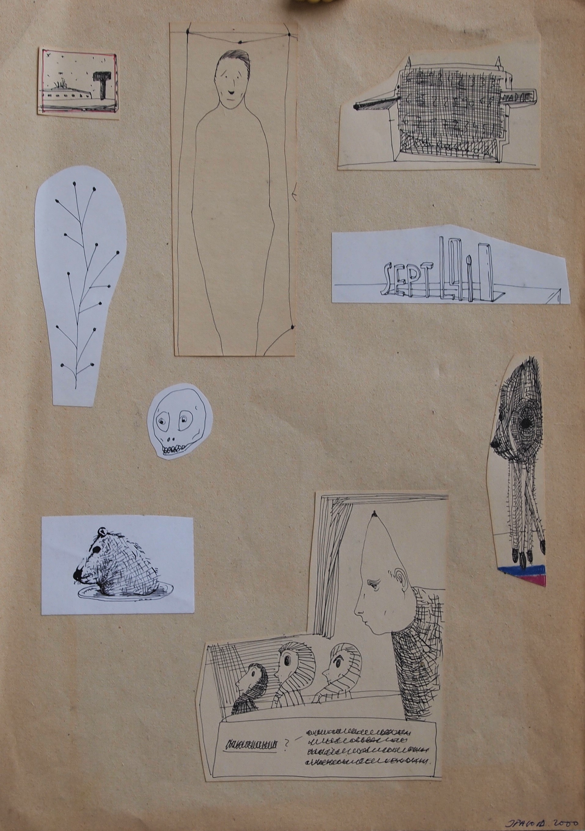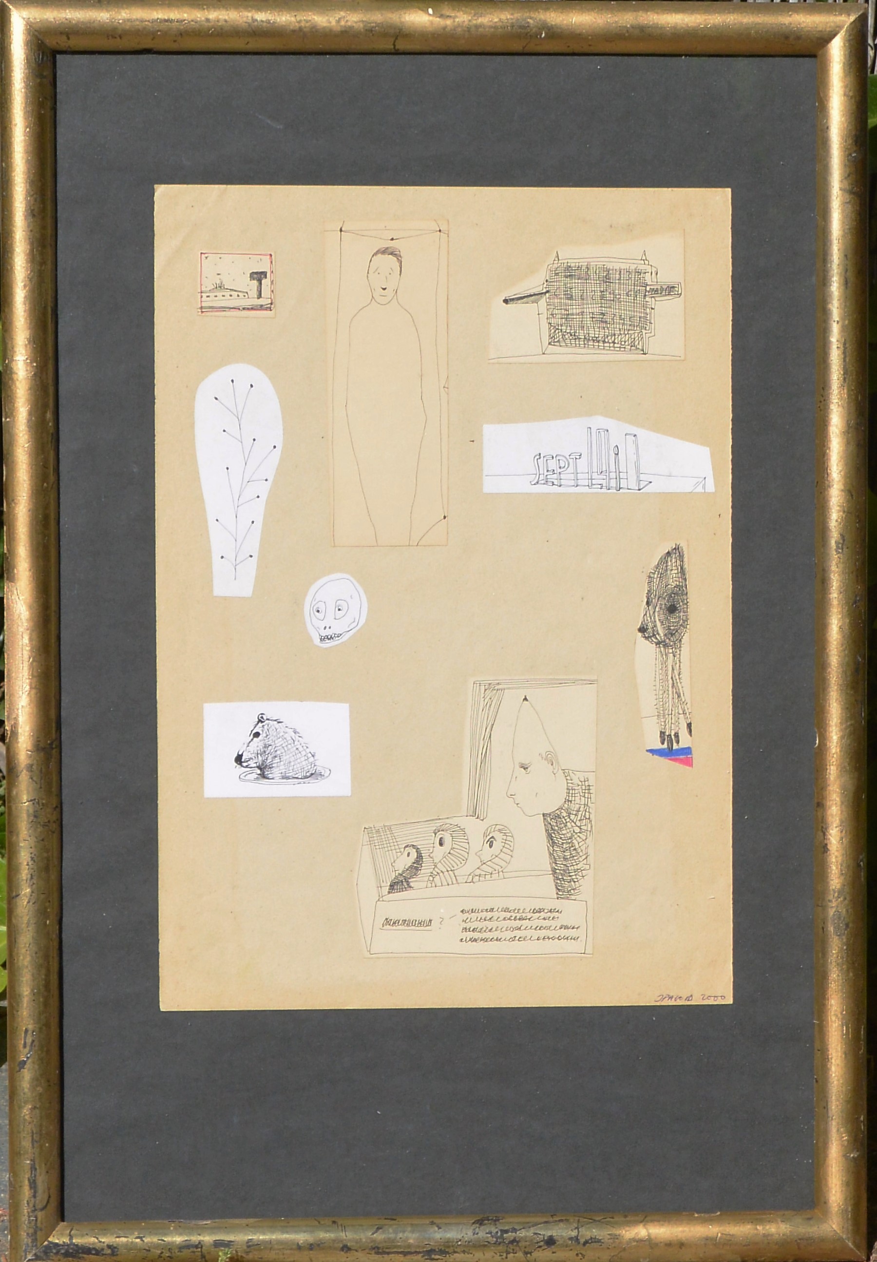 Javier Pagola 2000, SEPT, dibujo técnica mixta y collage papel, enmarcado, papel 40×28 cms. y marco 61,50×42 cms.
