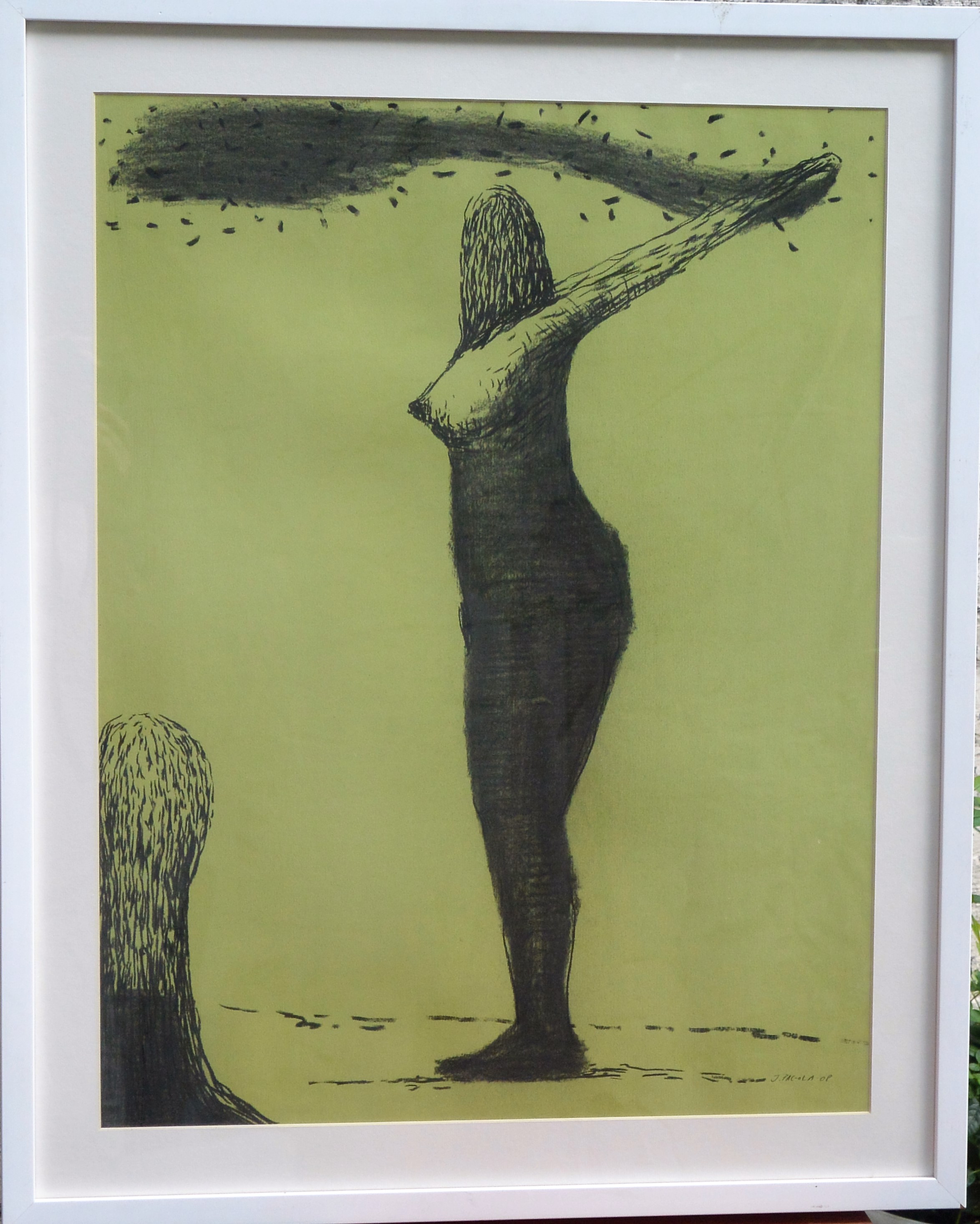 Javier Pagola 2008, Partículas en el aire, dibujo técnica mixta papel, enmarcado, papel 65×50 cms. y marco 76×61,50 cms.