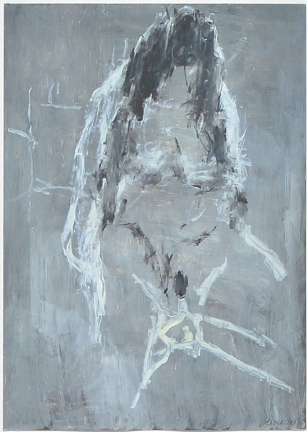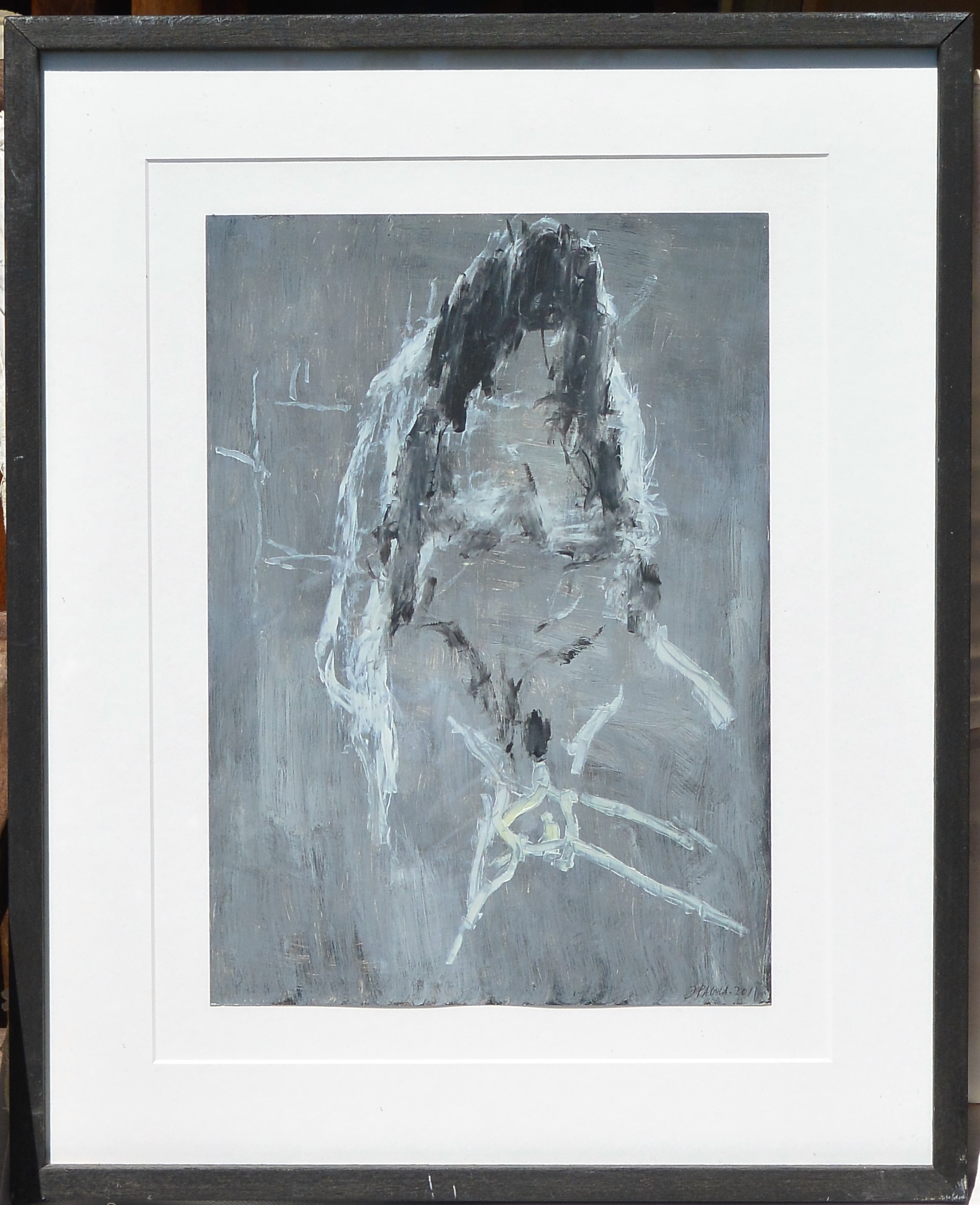 Javier Pagola 2011, Mujer en grises, acrílico cartulina, enmarcado, pintura 35×25 cms. y marco 52×42 cms.