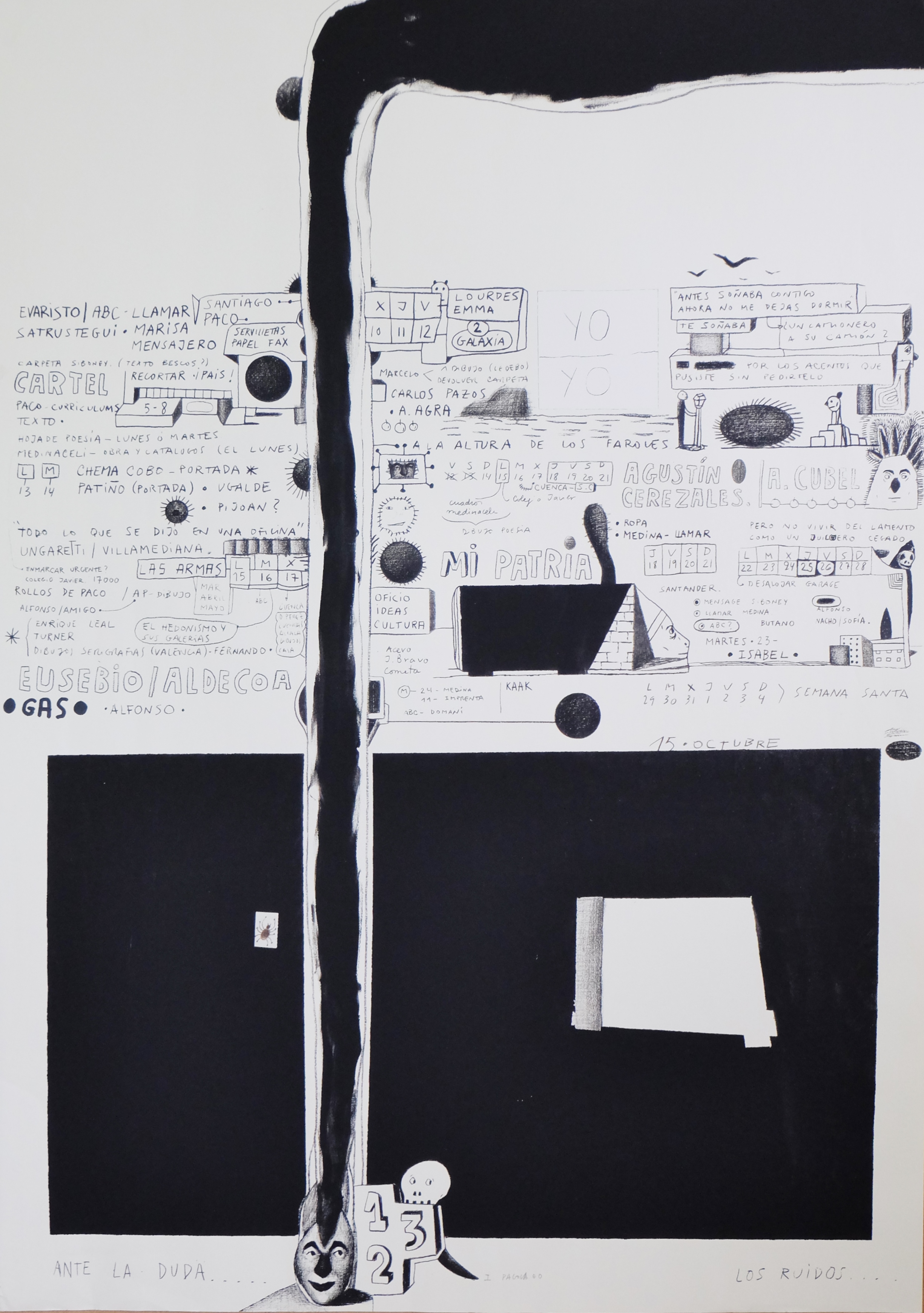 Javier Pagola, «Ante la duda…. los ruidos», serigrafía, numerado pa, firmado y fechado 2000 a lapiz, 99×69 cms.