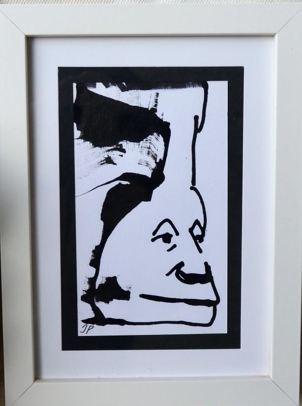Javier Pagola, Cabeza de pensar, dibujo tinta cartulina, enmarcado, dibujo 12,50×7,50 cms. y marco 20×14,50 cms.