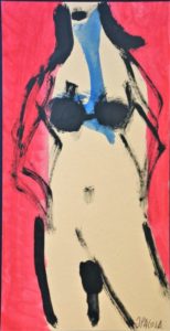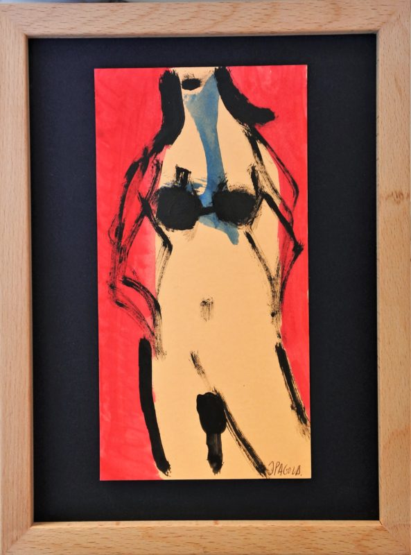 Javier Pagola, Camino al vestuario, dibujo acrílico cartulina, enmarcado, dibujo 19×10 cms. y marco 25×19 cms.