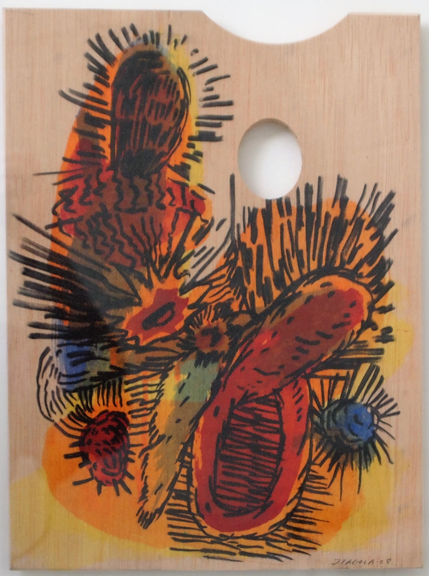 Javier Pagola – «Composición cactus» acrílico sobre paleta de pintor
