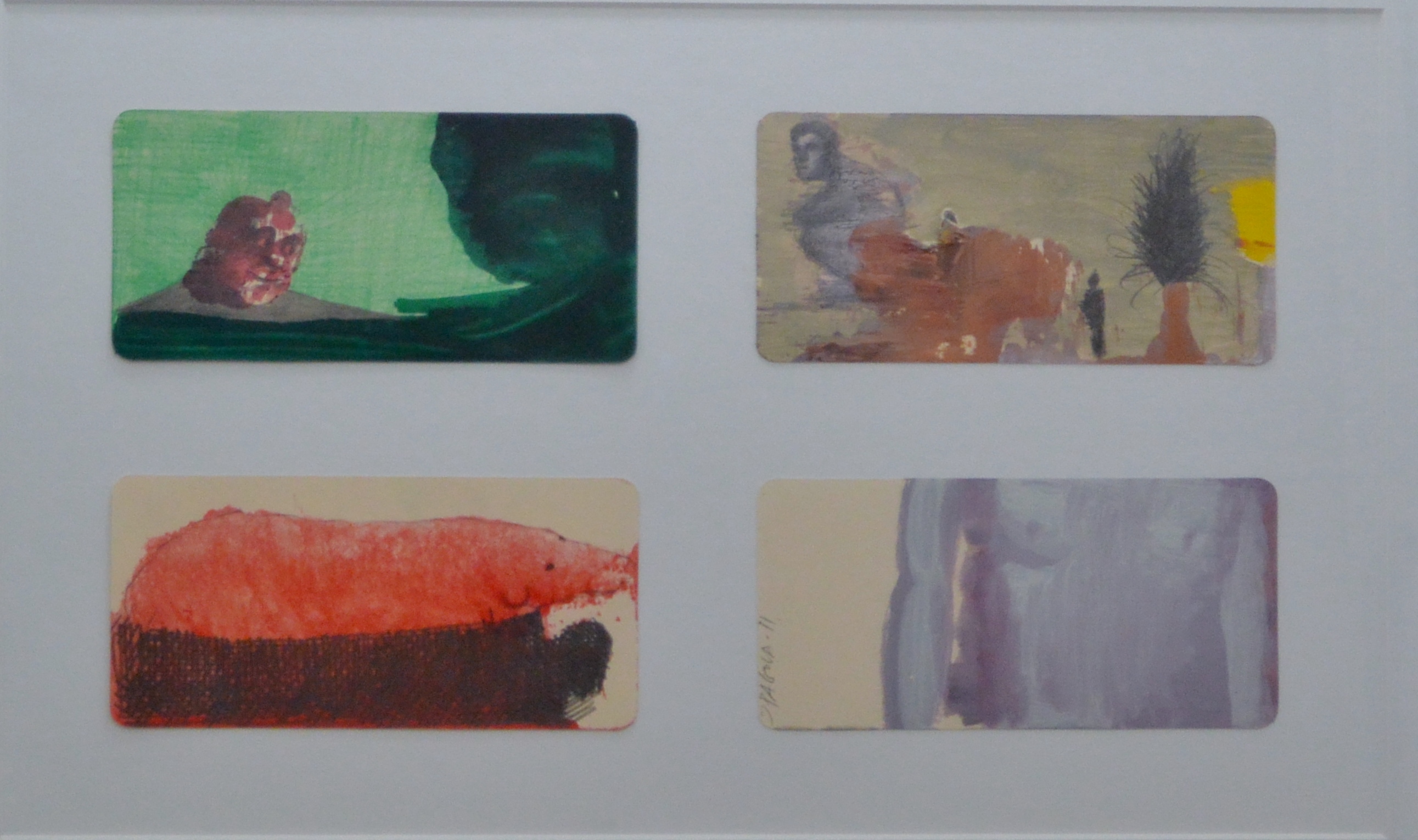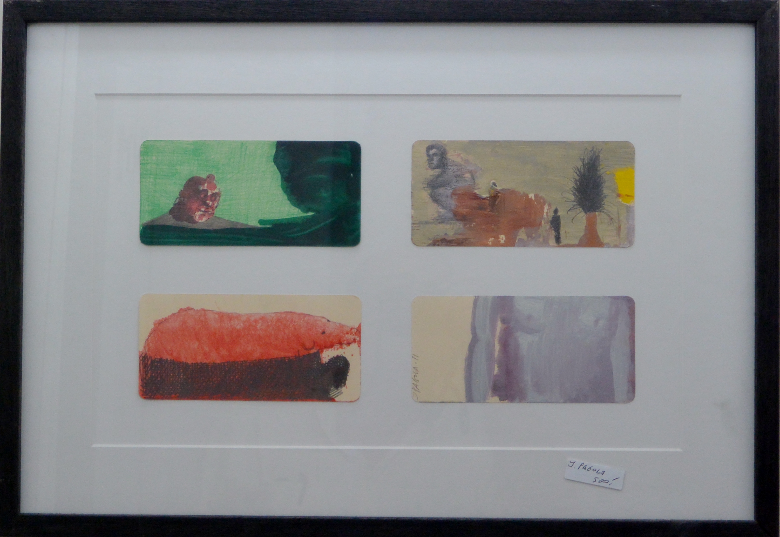 Javier Pagola, Composición # 22, acrílico cartulina 2011, enmarcado, cuatro dibujos de 14,5×7 cms. y marco 35×51 cms. Marco incluido