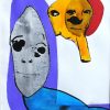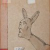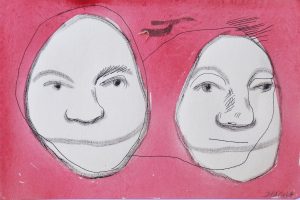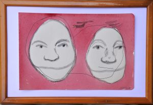 Javier Pagola, Dos amigos fondo rosa, dibujo original técnica mixta papel, enmarcado, dibujo 16×24 cms. y marco 22×32 cms.