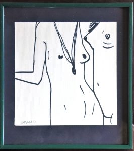 Javier Pagola, Dos jóvenes amigas, dibujo original tinta sobre cartulina, enmarcado, dibujo 17×17 cms, y marco 24,50×22 cms.