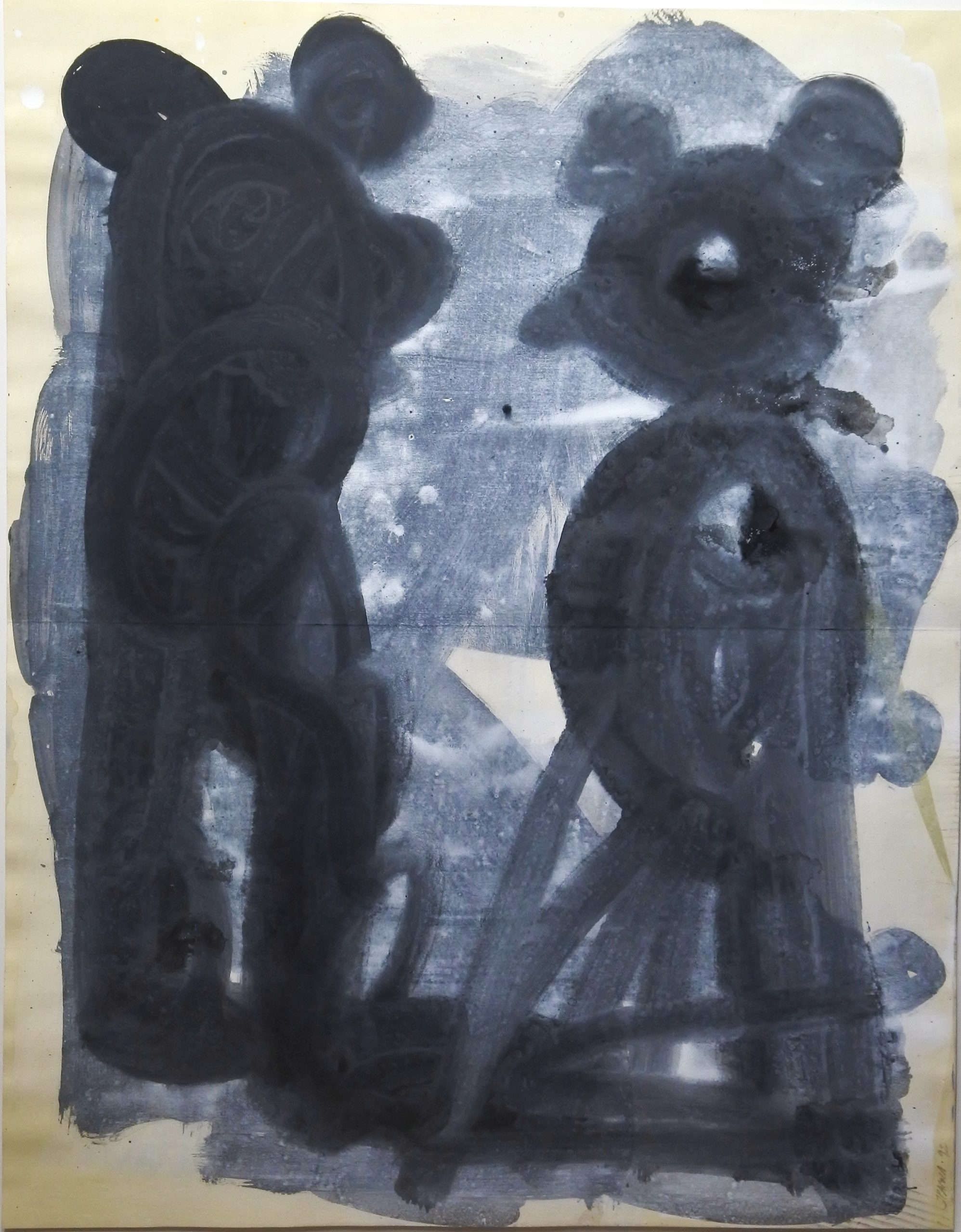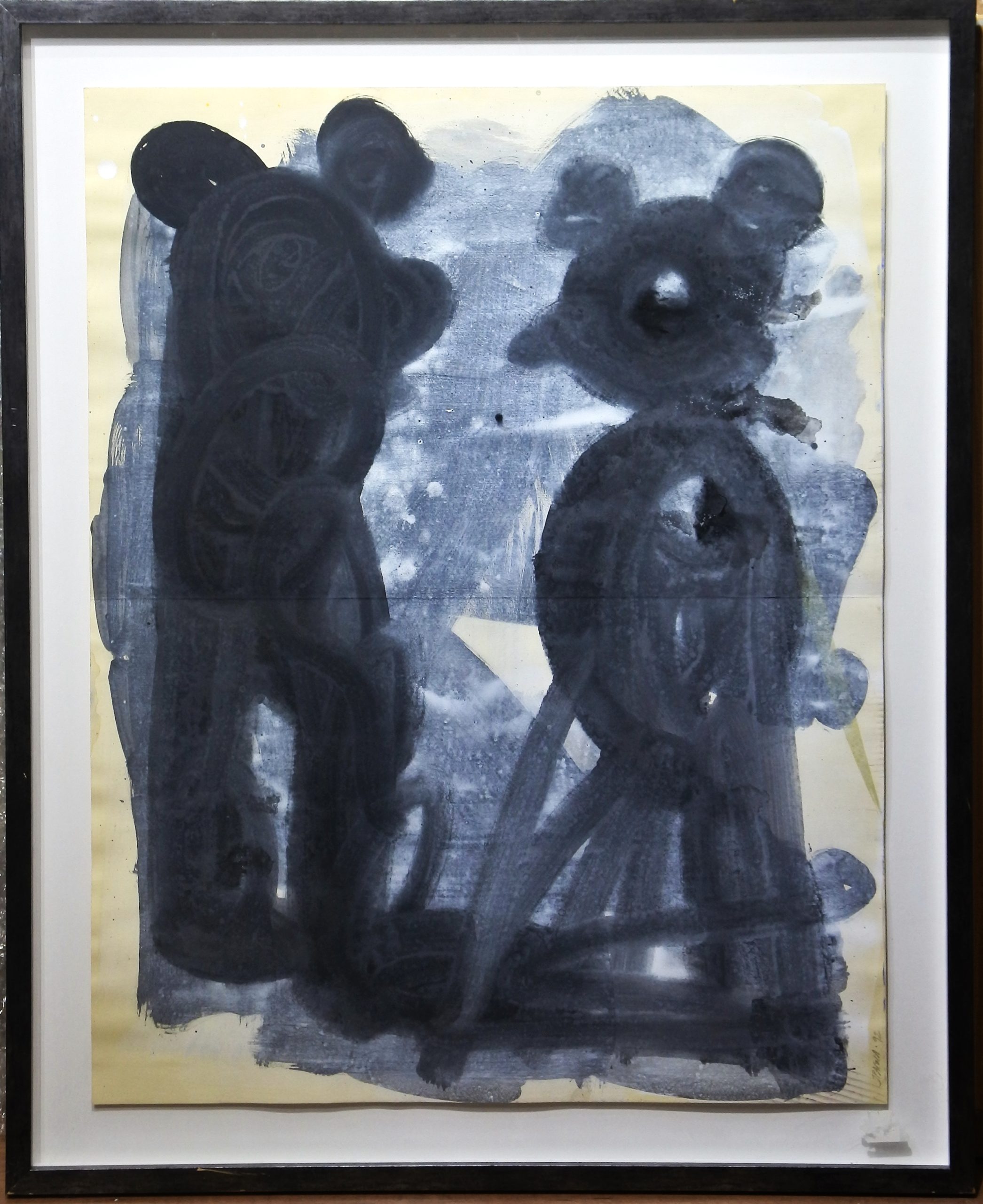 Javier Pagola, 1992, Dos personajes arratonados, acrílico cartulina, enmarcado, dibujo 82×64 cms. y marco 96×78 cms.