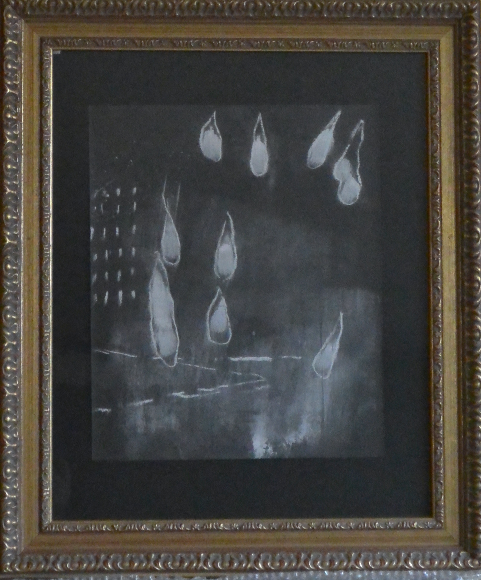 Javier Pagola, Drops, técnica mixta papel de lija, enmarcado, dibujo 28×23 cms. y marco 46×39 cms.