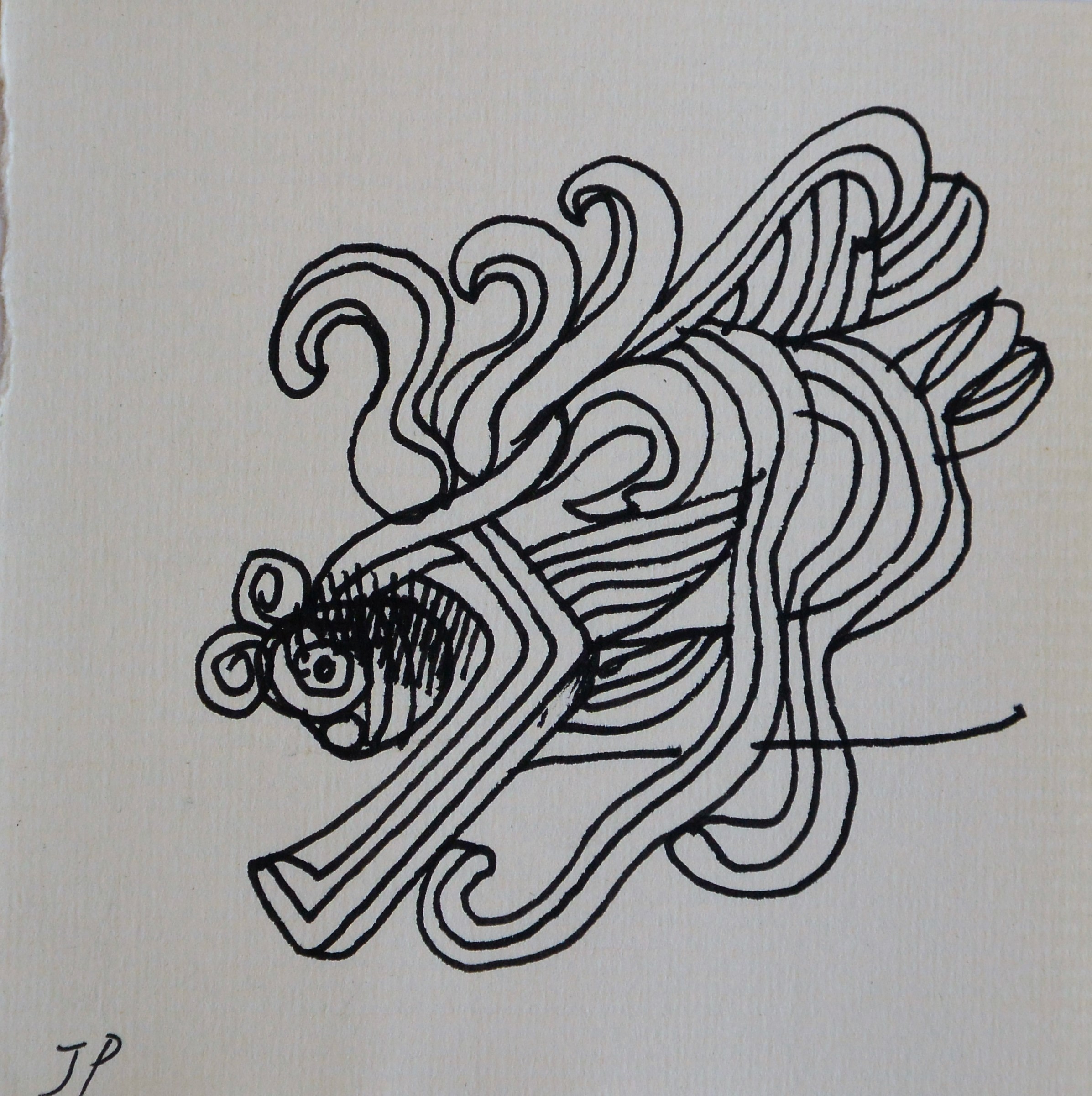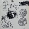 Javier Pagola, El cuerpo hecho un lío, dibujo tinta papel, enmarcado, dibujo 10×10 cms. y marco 22×22 cms. Marco incluido