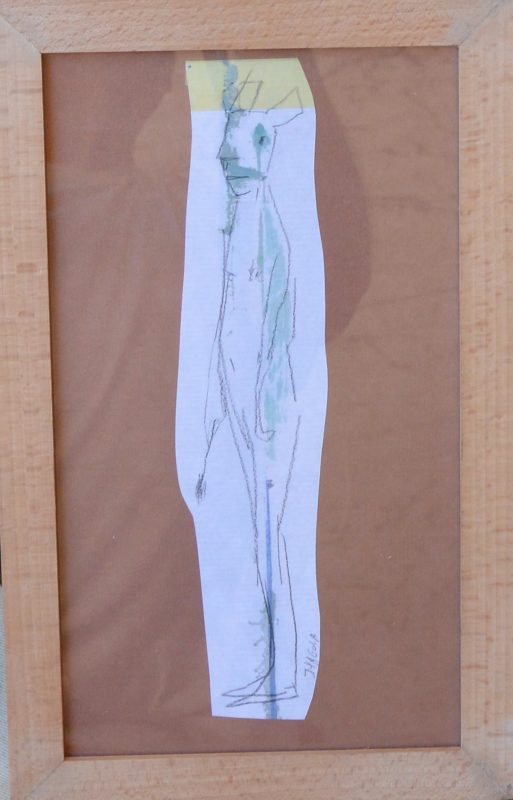 Javier Pagola, El largo, dibujo carboncillo y acuarela papel, enmarcado, dibujo 26,50×6 cms. (irregular) y marco 33×20,50 cms.