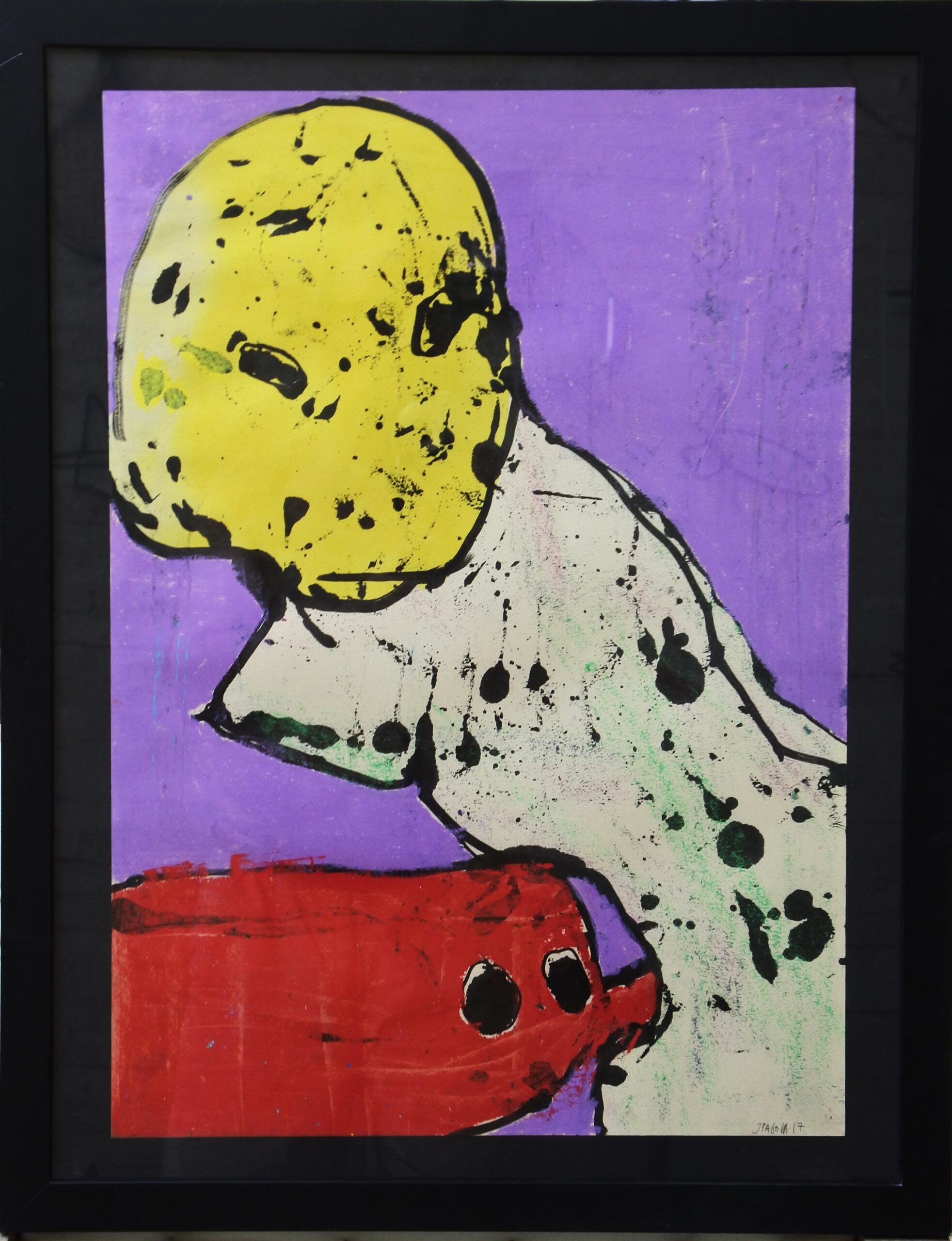 Javier Pagola – «El perro rojo» pintura original acrilico sobre cartulina, enmarcado