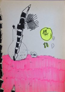 Javier Pagola, Globo 12, dibujo tinta y acuarela papel, enmarcado, dibujo 21,50×15,50 cms. y marco 30,50×26 cms.