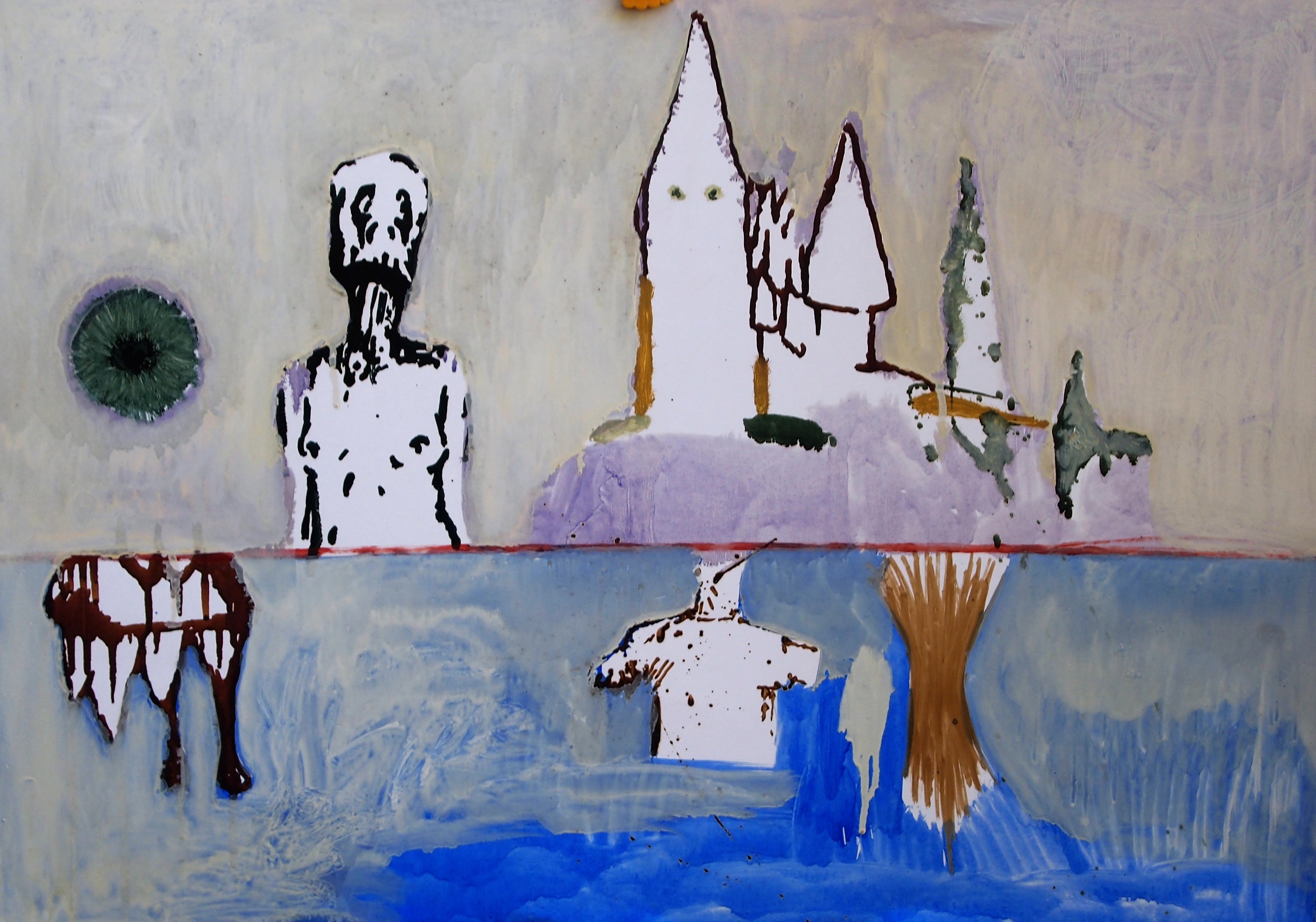 Javier Pagola – «Horizonte y torres blancas» pintura original qcrílico sobre cartulina, enmarcado, pintura 50×70 cms. y ,marco 62×82 cms.
