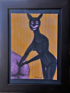 Javier Pagola, Juegos privados, dibujo tinta y acrílico papel, enmarcado, dibujo 14,50×10,50 cms. y marco 21×16 cms.