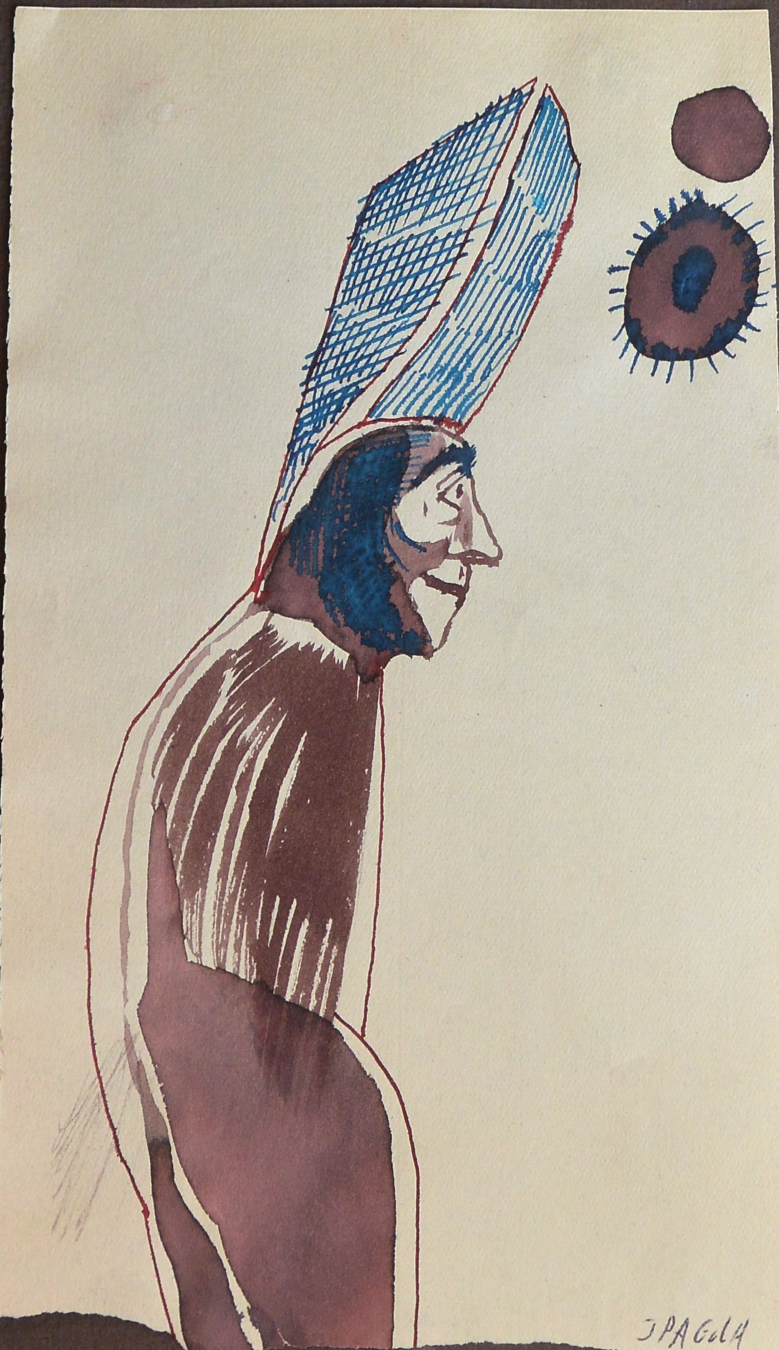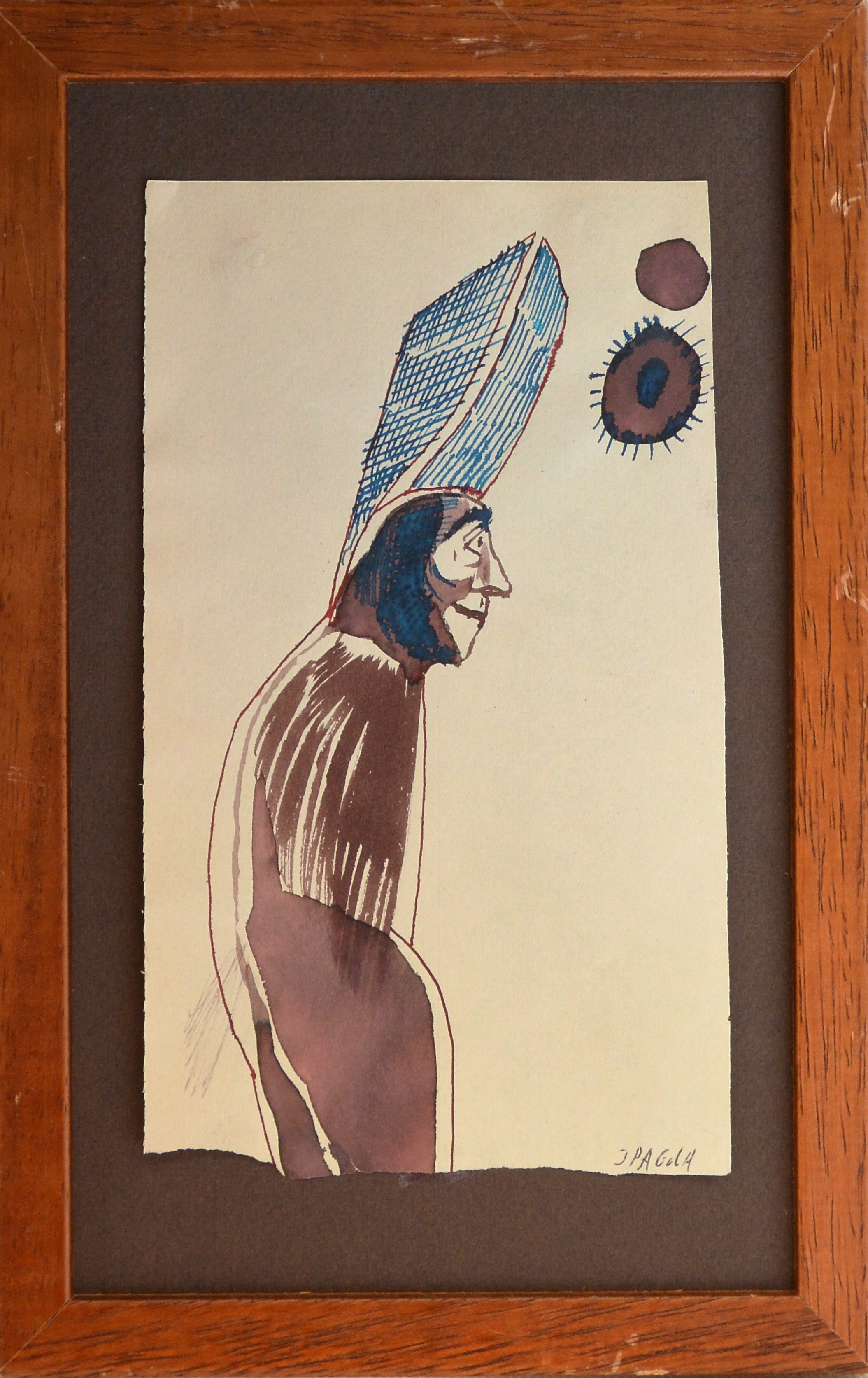 Javier Pagola, La torre en la cabeza, dibujo técnica mixta papel, enmarcado, dibujo 20×12 cms. y marco 28×18 cms.
