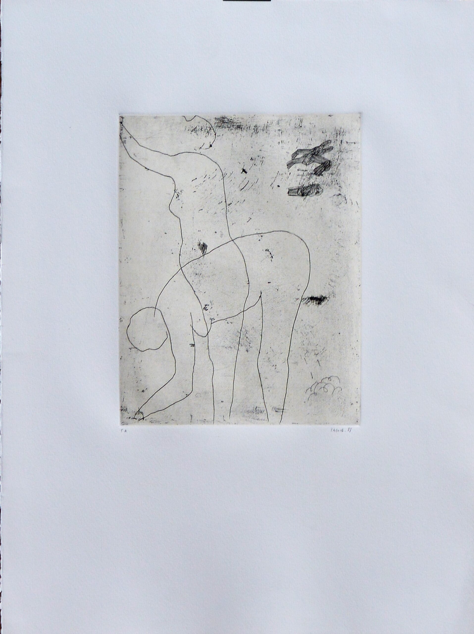 Javier Pagola, Mujer recogiendo, grabado aguafuerte, edición 50 ejemplares numerado y firmado a lapiz, plancha 25×19 cms. y papel 51×38 cms.