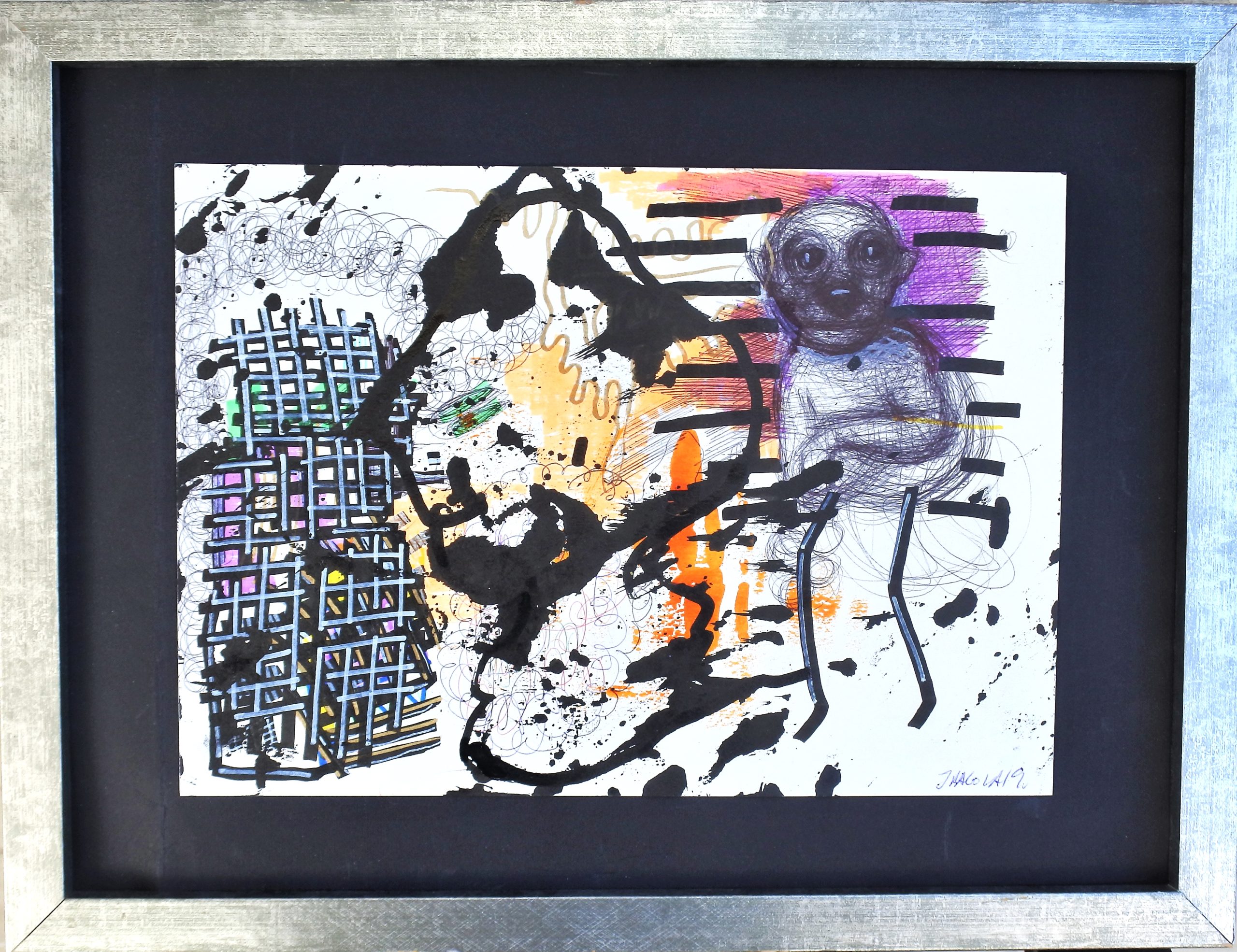 Javier Pagola, Perdido en las redes, pintura acrílico sobre cartulina, enmarcado, dibujo 21×29,50 cms. y marco 31,50×42 cms.