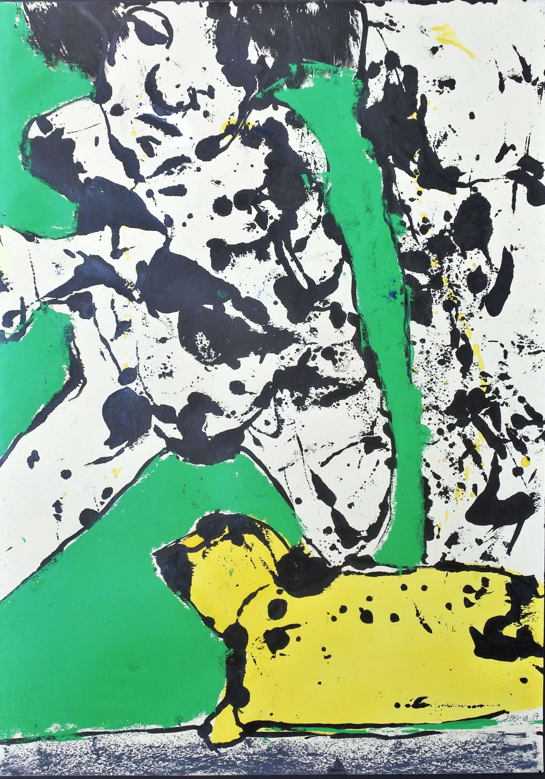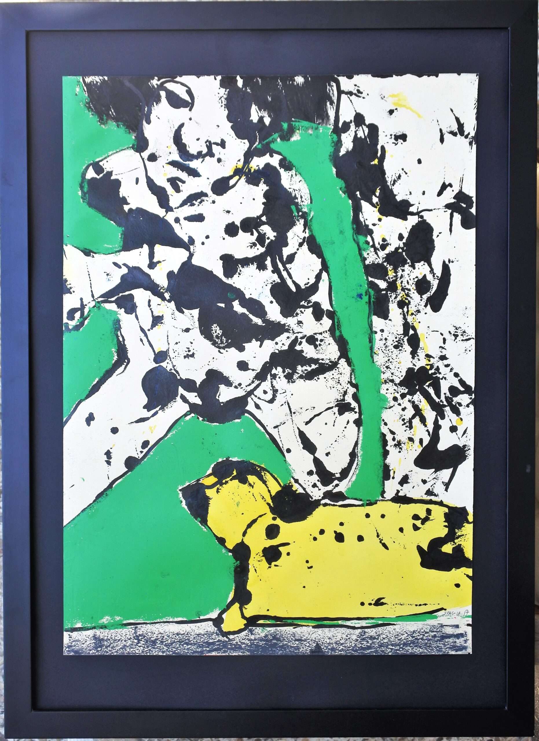 Javier Pagola – «Perro amarillo» pintura original acrílico sobre papel, enmarcado