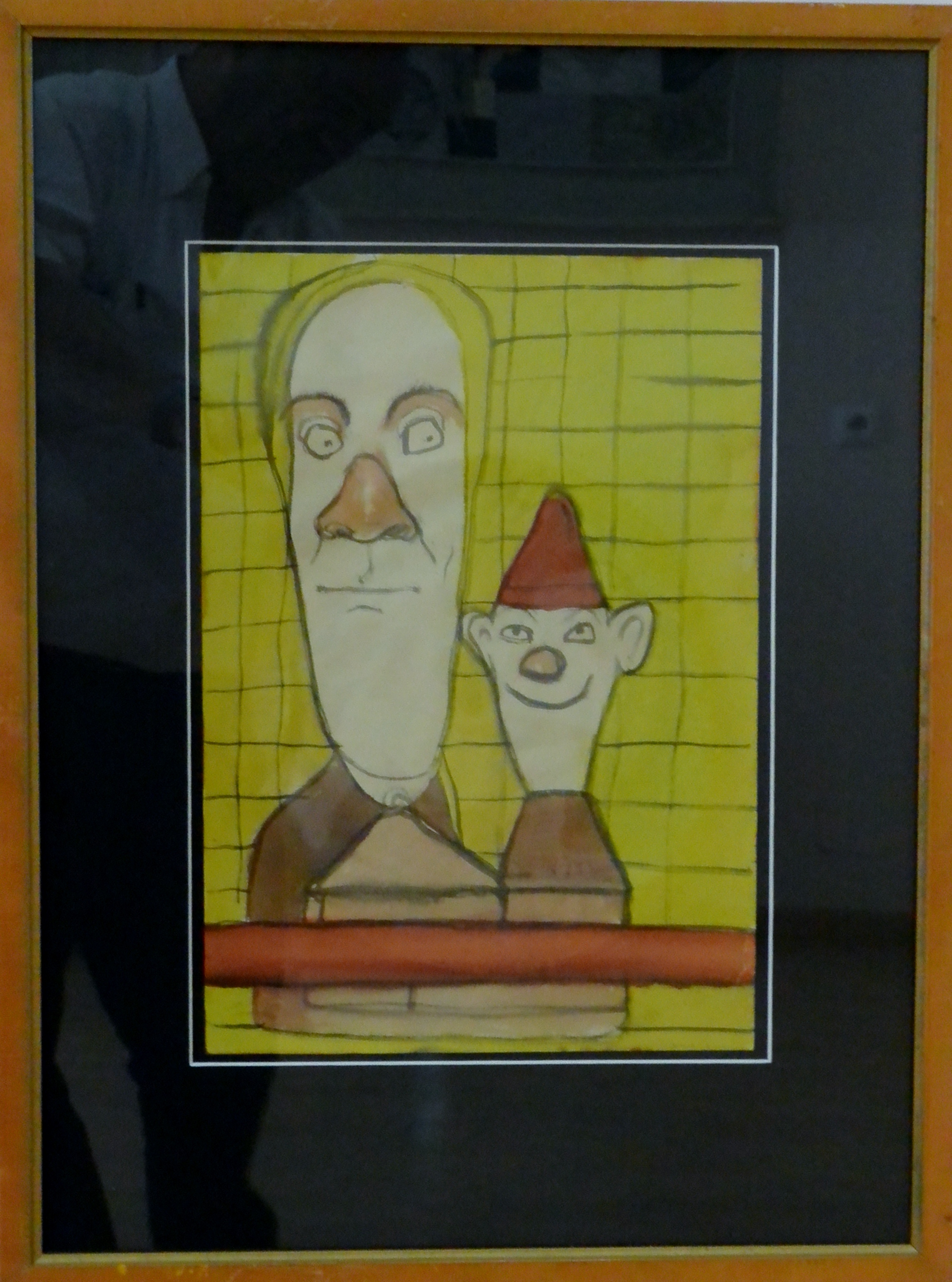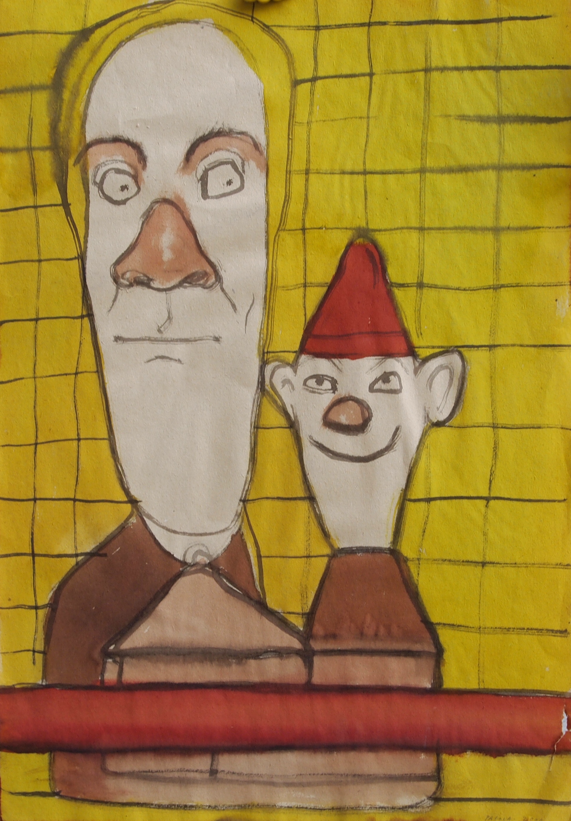 Javier Pagola, Personaje y marioneta, acrílico papel 2000, enmarcado, dibujo 40×28 cms. y marco 64×48 cms. Marco incluido
