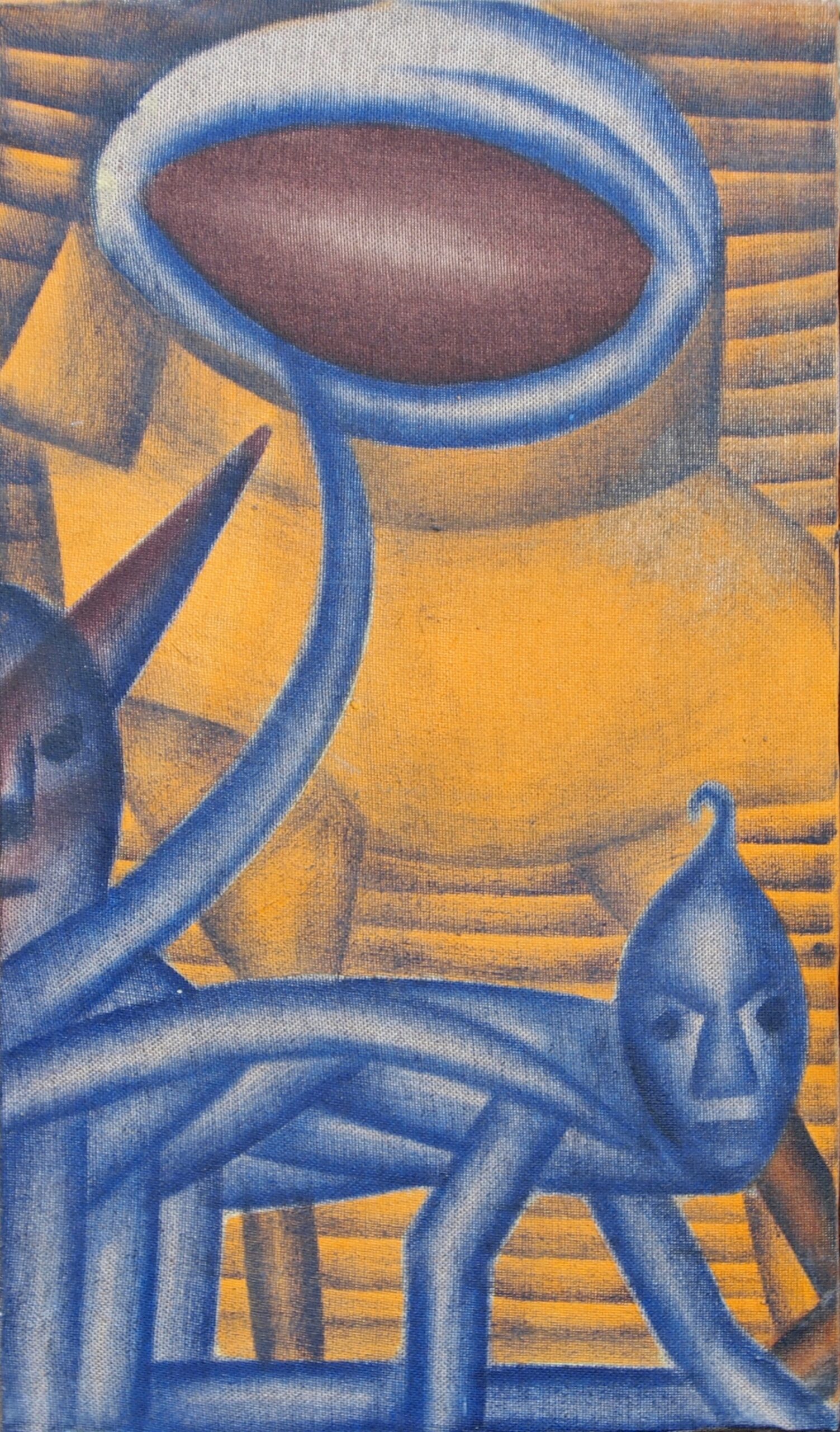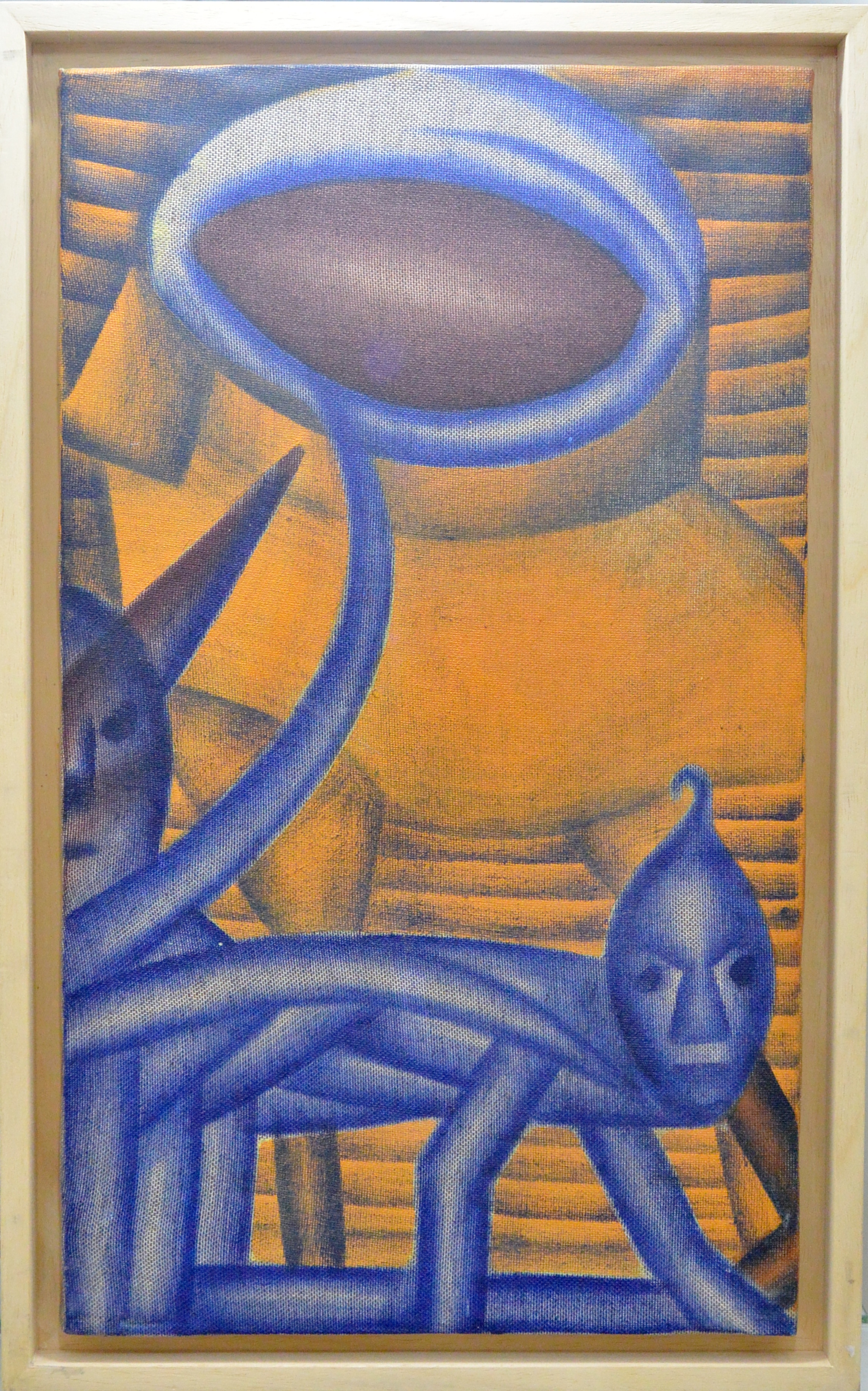 Javier Pagola 1996, Personajes azules, oleo lienzo, enmarcado, pintura 46×27 cms. y con marco 50×32 cms. Marco incluido