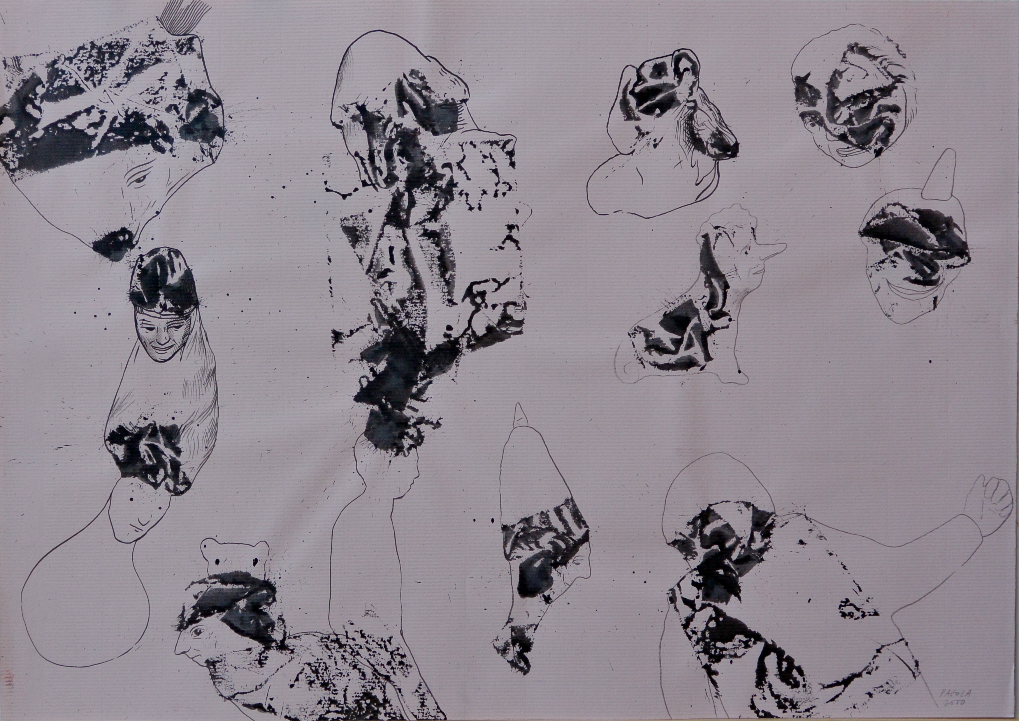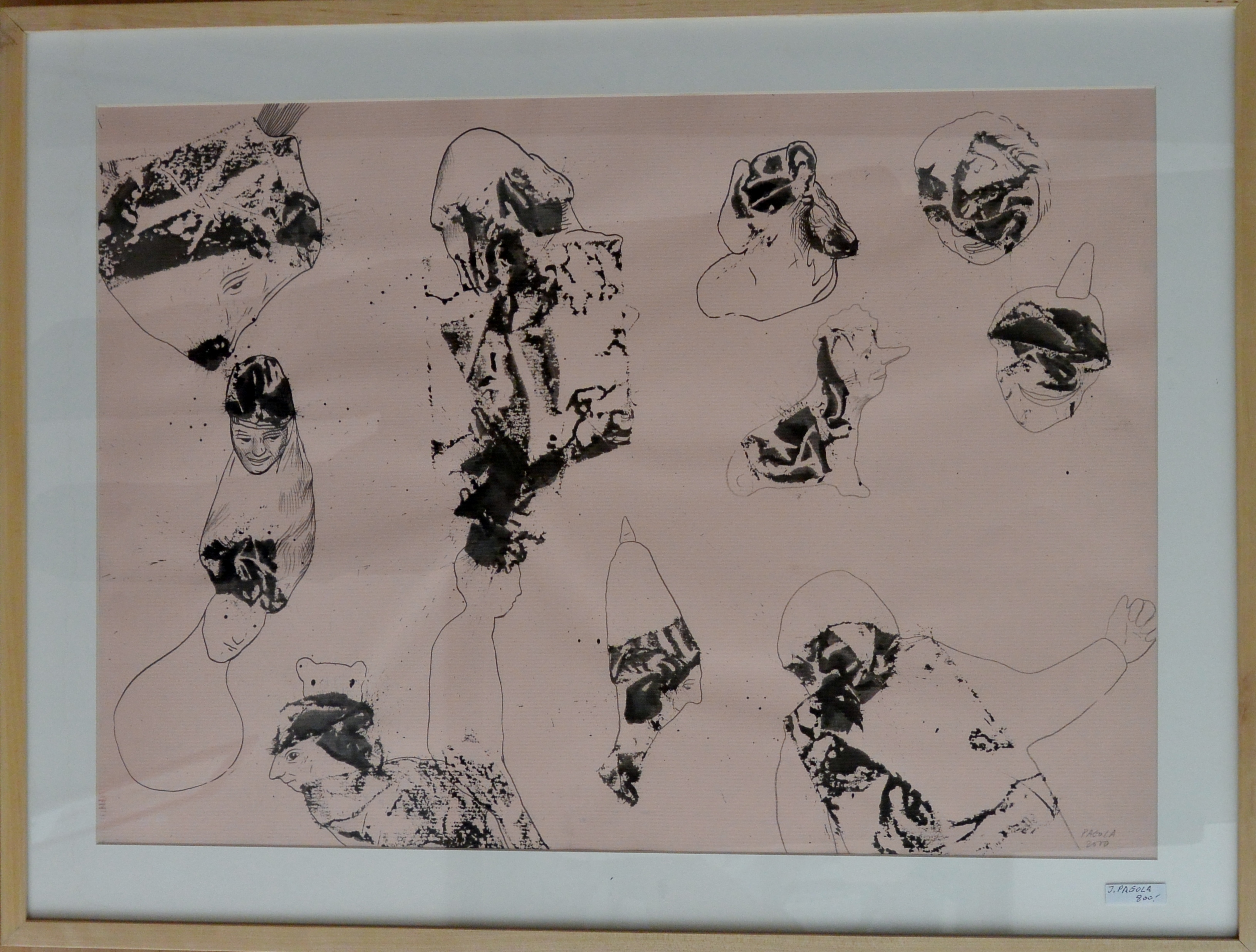 Javier Pagola – «Figuras sobre fondo rosa» acrílico papel, enmarcado