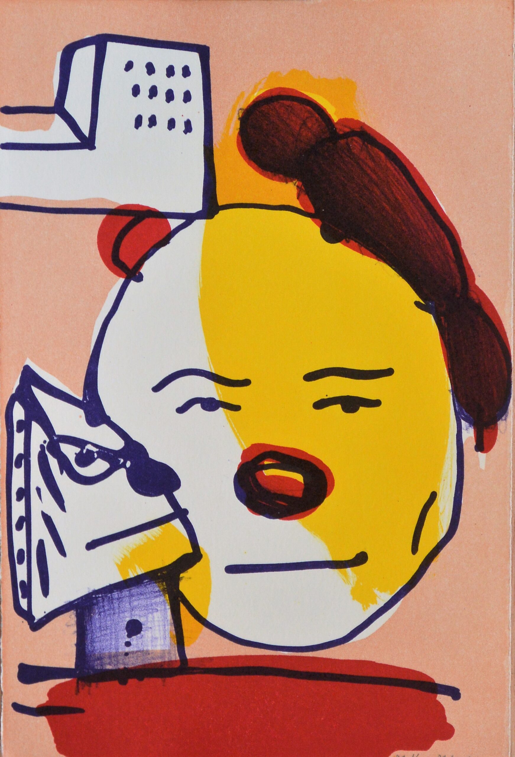 Javier Pagola, Rostro blanco y amarillo, serigrafía, ilustración para el libro Gargantúa, 24×16 cms.