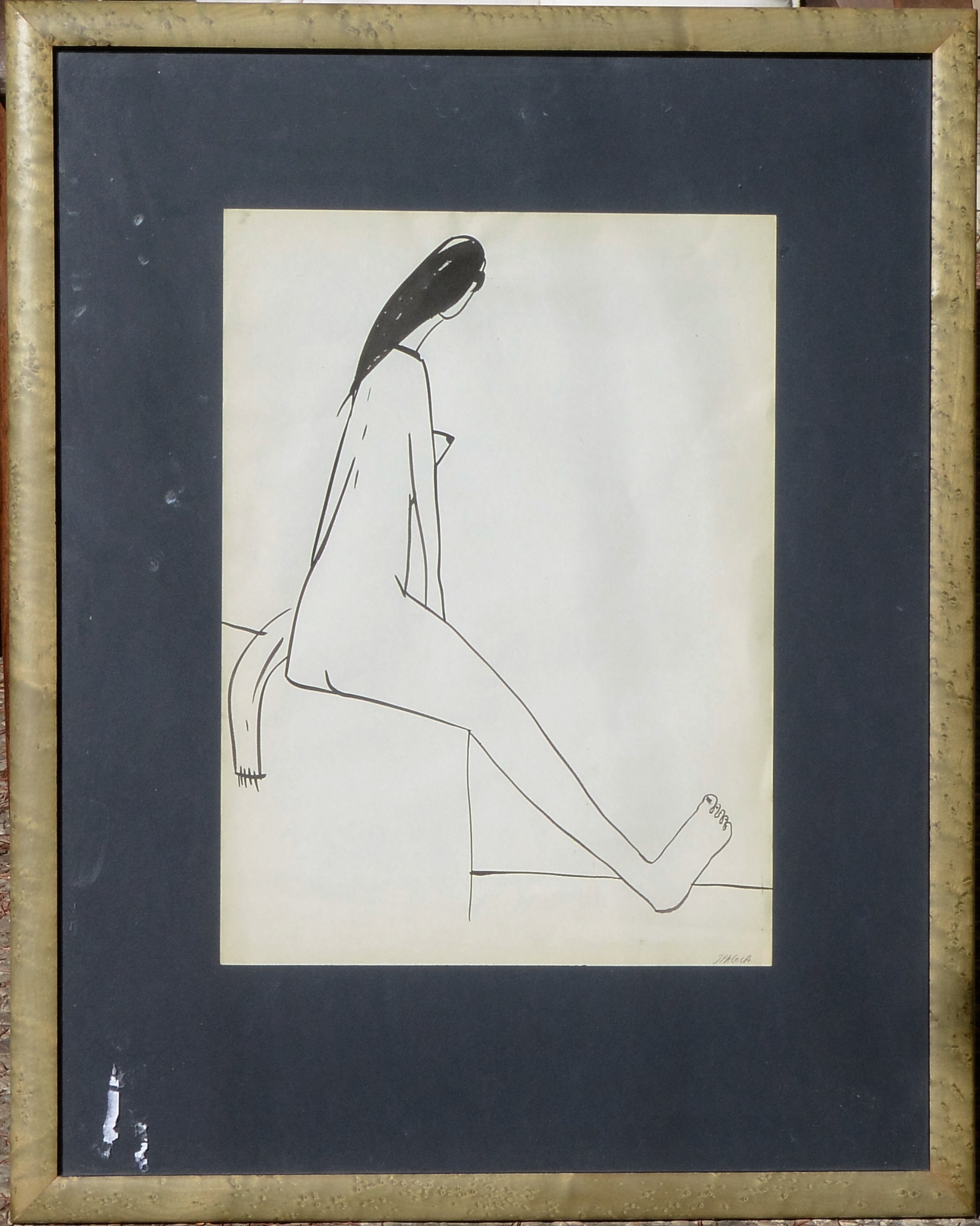 Javier Pagola, Salida del baño, dibujo lápiz papel, enmarcado, papel 44×32 cms. y marco 71×65 cms.