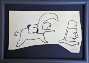 Javier Pagola, Salto gayola y espectadores, dibujo tinta papel, enmarcado, dibujo 12×20 cms. y marco 18×25 cms.