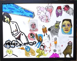Javier Pagola, Susurros, dibujo original técnica mixta sobre cartulina, enmarcado, pintura 50×65 cms. y marco 54×69 cms.