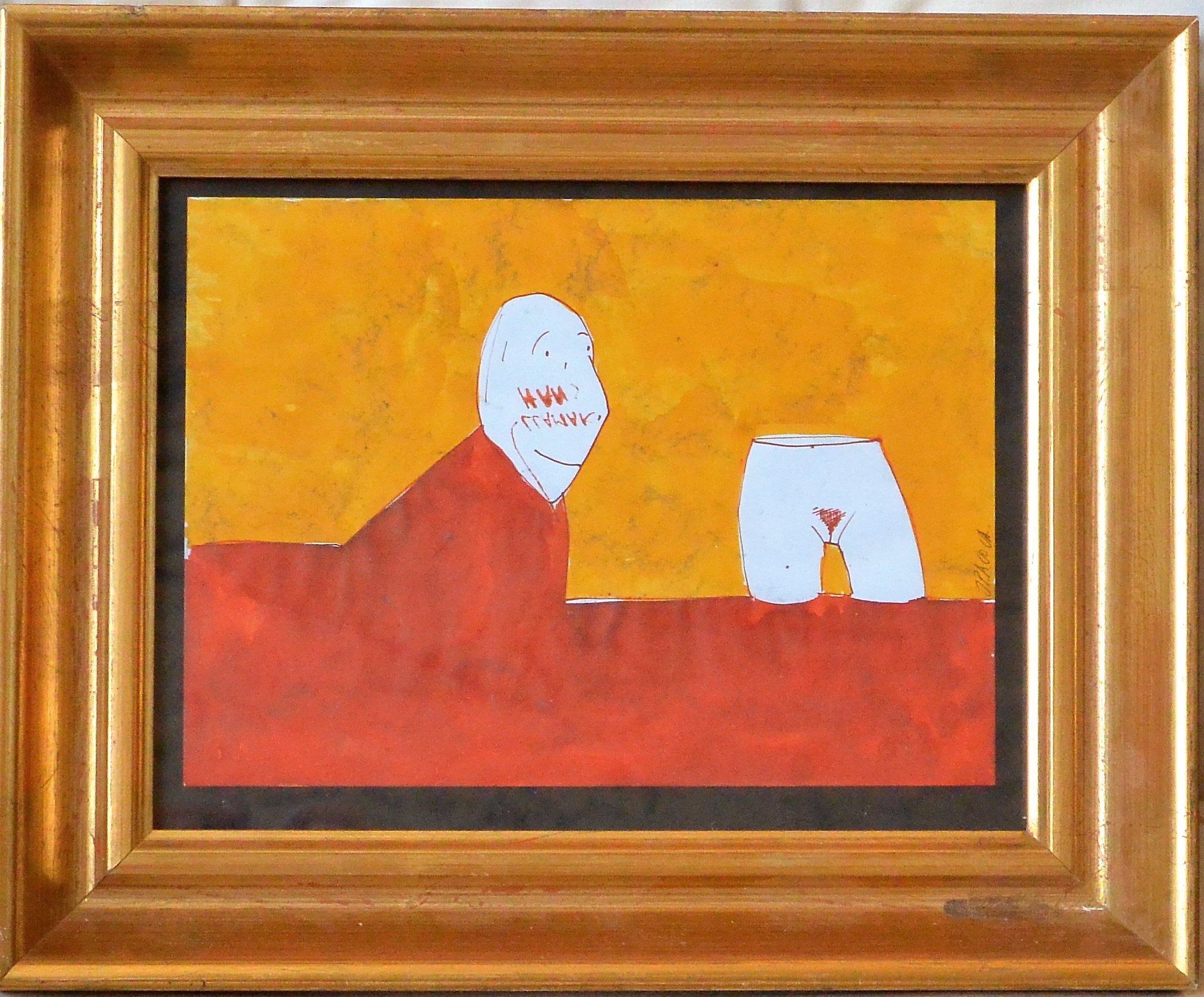 Javier Pagola, Vision sobre tierra roja, dibujo técnica mixta papel, enmarcado, dibujo 16×22 cms. y marco 26×32 cms.