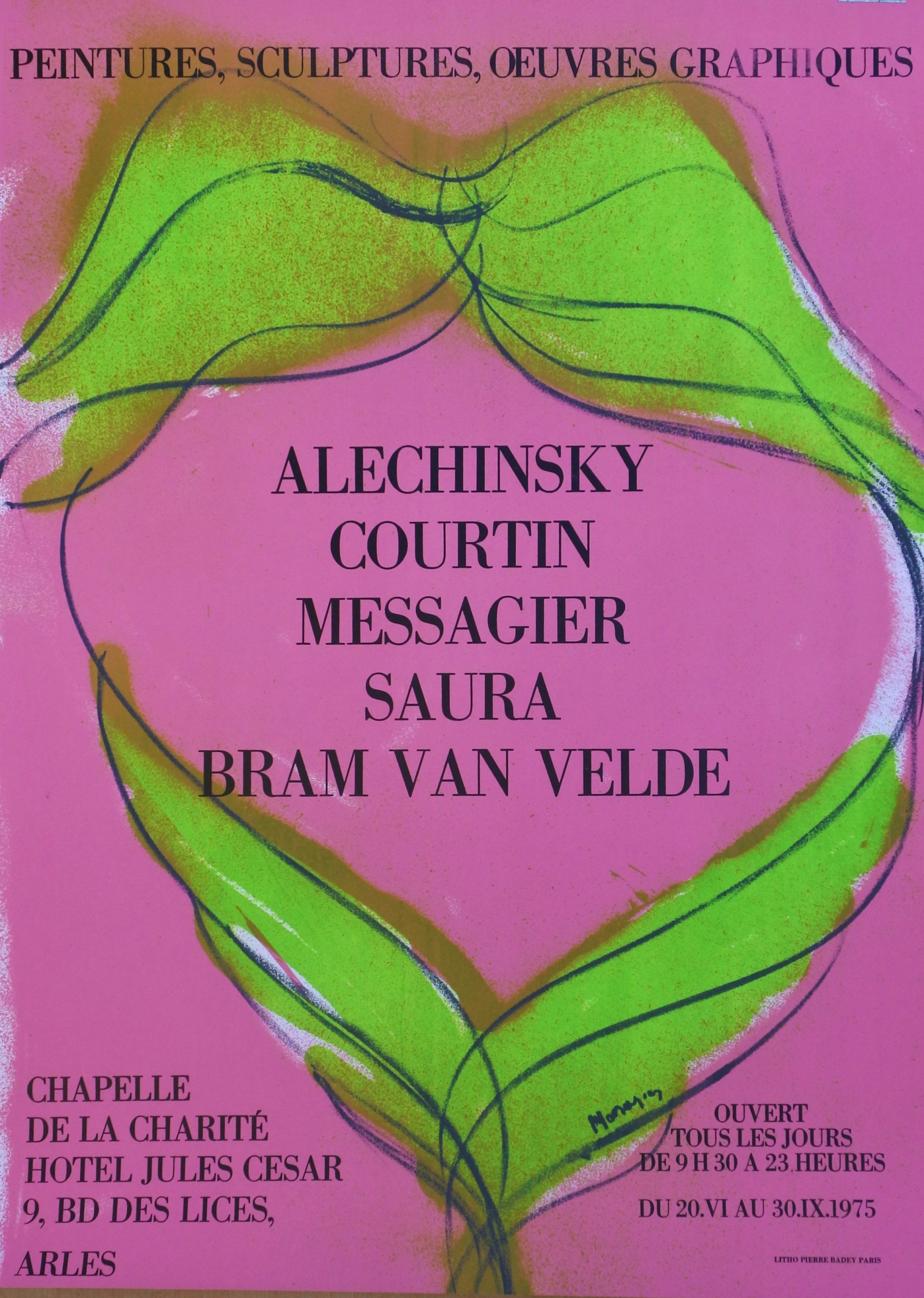 Jean Messagier, Exposición 1975, cartel original exposición colectiva en Chapelle de la Charité en Arles, Francia, 73×53 cms.