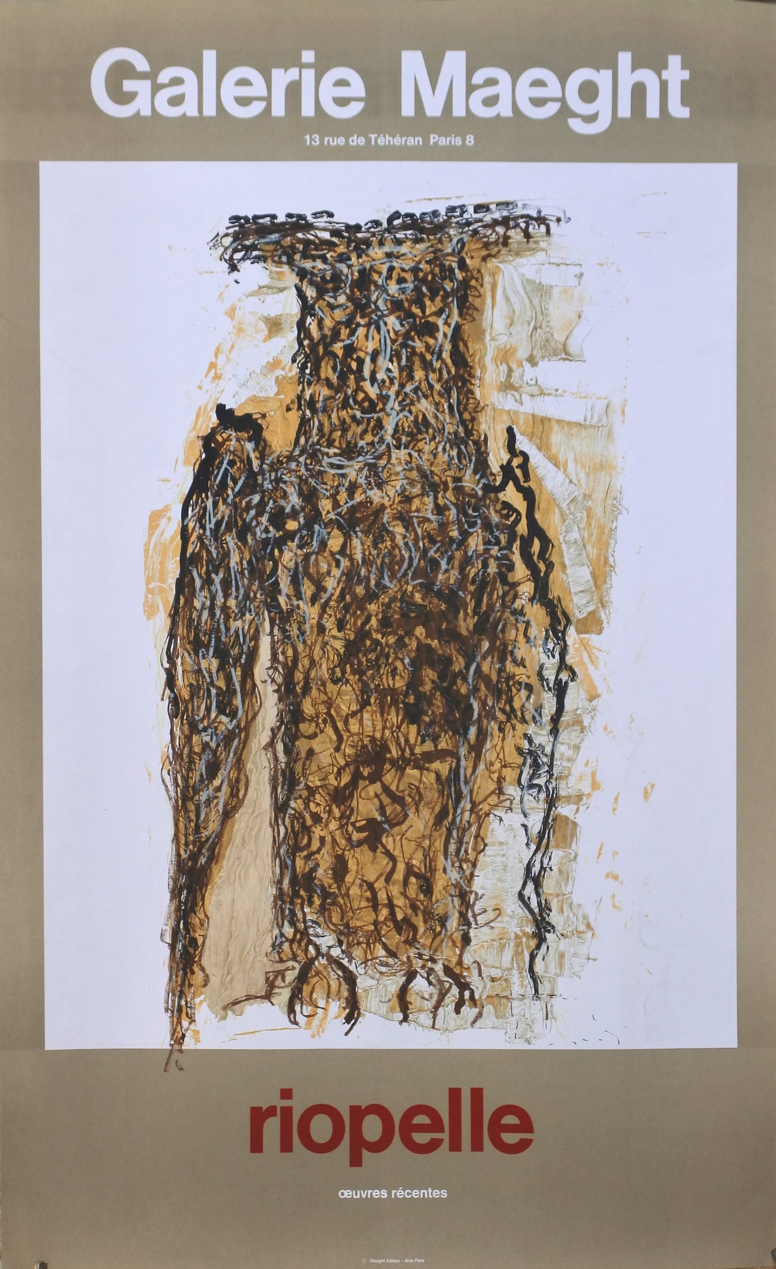 Jean Paul Riopelle, Hibou, cartel litográfico original exposición oeuvres recèntes en Galerie Maeght Paris en 1970, 81×50 cms.