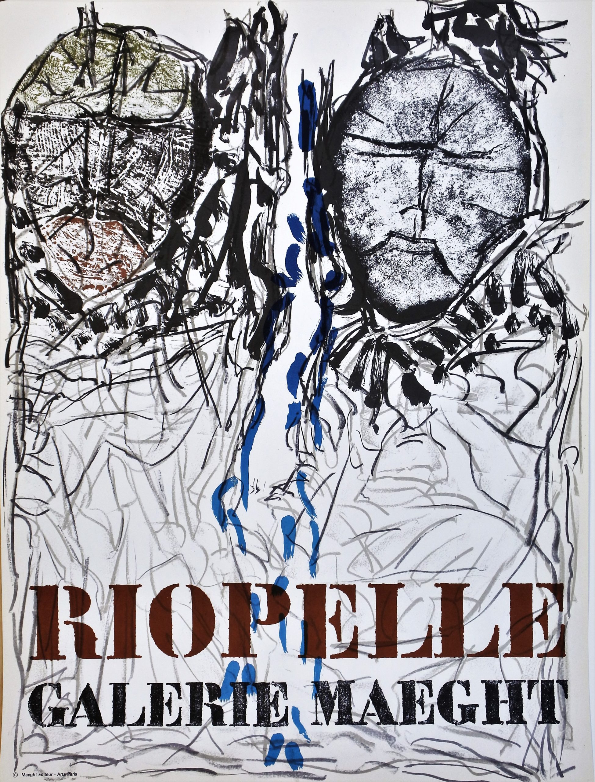Jean Paul Riopelle, Visages, cartel original exposición en la Galerie Maeght Paris en 1.974, 70×53 cms.