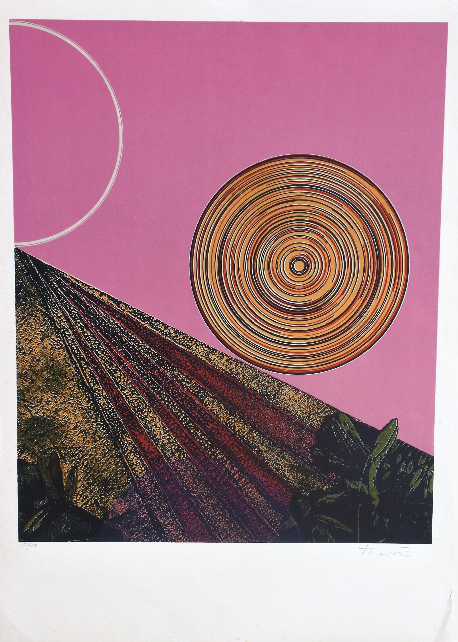 Joan Josep Tharrats, A. L. Volta ciclista a Catalunya, litografia avant la lettre para el cartel de la volta ciclista a Catalunya 1973, edición 300 ejemplares, numerado y firmado a lápiz, 75×53 cms.