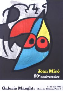 Joan Miró, 90 anniversaire, cartel litográfico original exposición en la Galerie Maeght Paris en 1983, 65×45 cms.