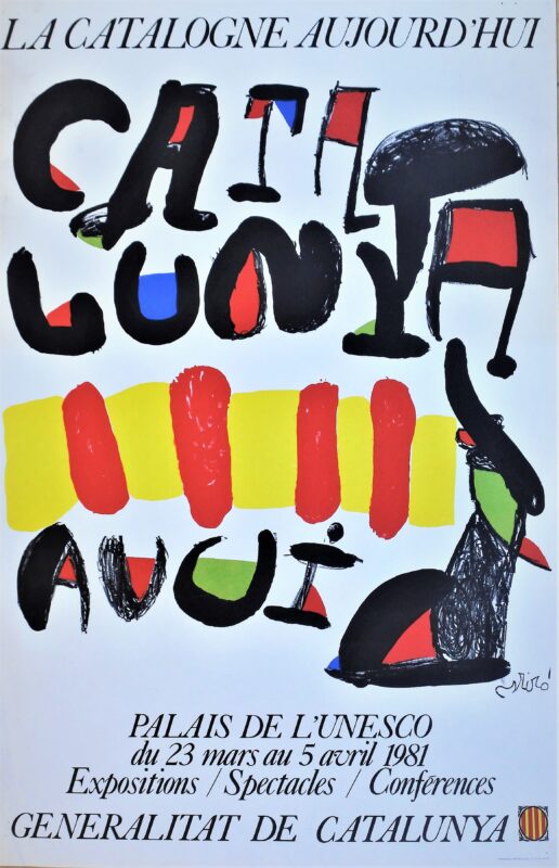 Joan Miró, Catalunya avui, cartel original exposición en el Palais de l´Unesco en 1981, 77×50 cms.