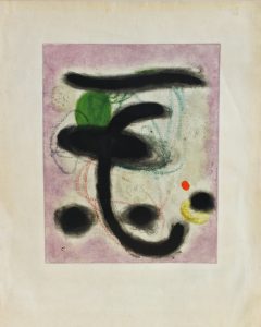 Joan Miró, Femme assise II, impresión litográfica, del libro Femmes de Claude Simon editado por Maeght Editeur, 52×42 cms.