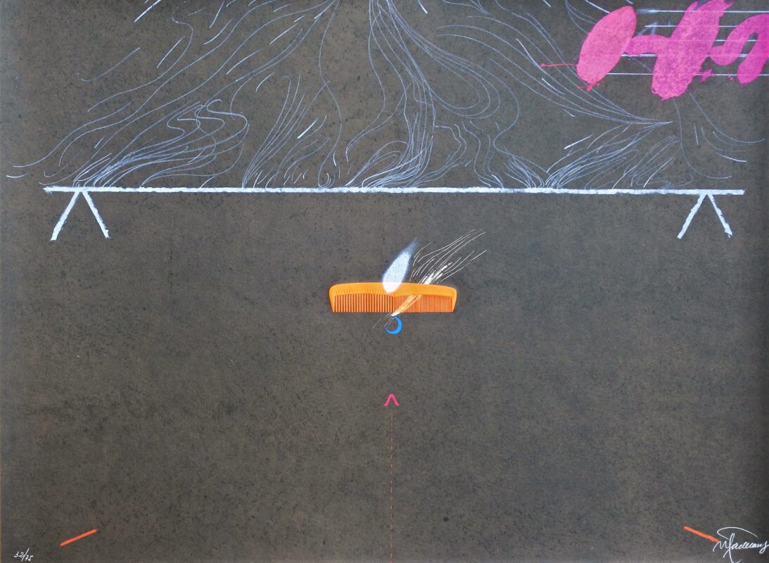 Joan Pere Viladecans, Entrebancs 3, litografia con gofrado, edición 75 ejemplares, numerada y firmada a lápiz, 56×76 cms.