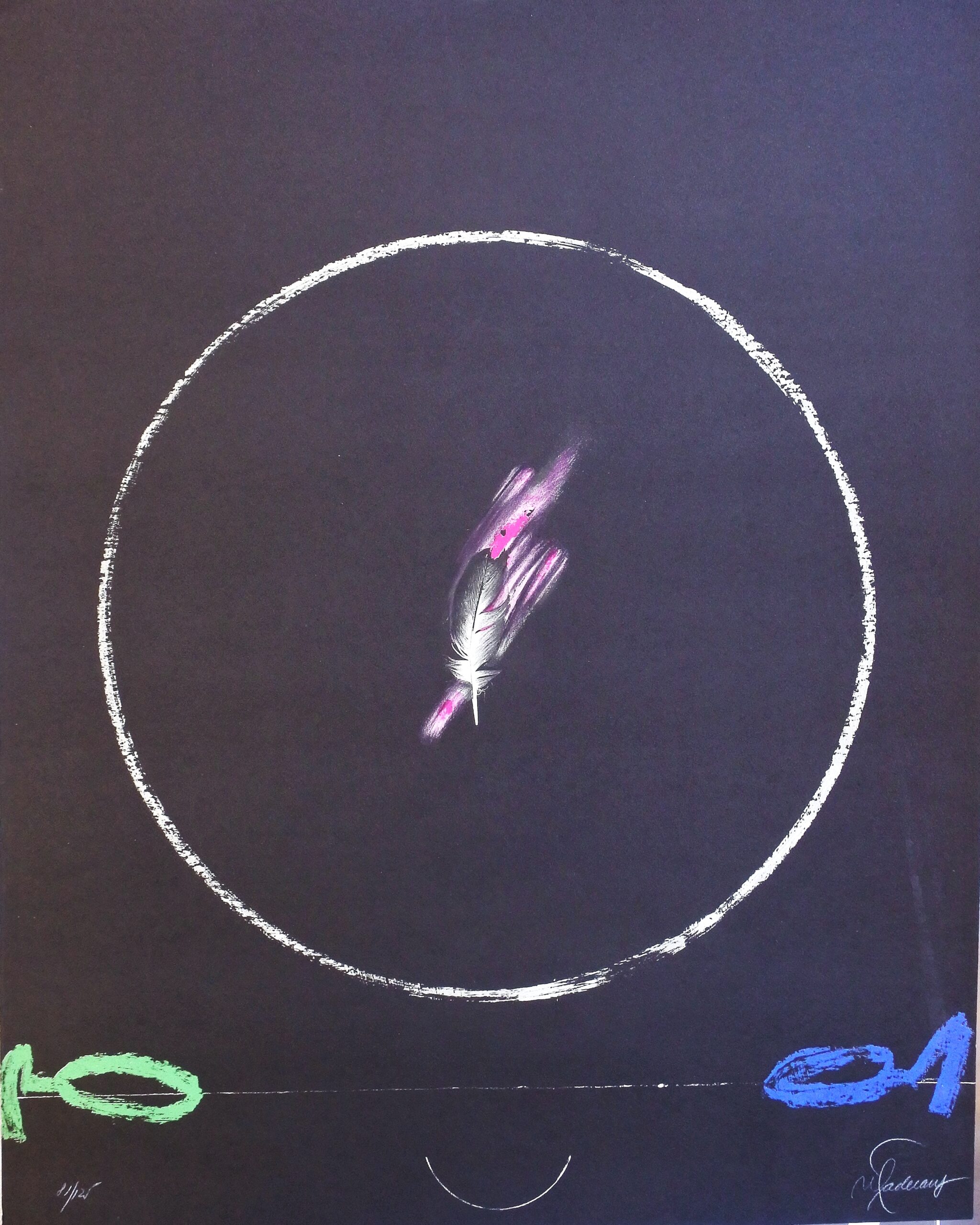 Joan Pere Viladecans, A.L. Valencia 1973, litografía, avant la lettre para el cartel de la exposición en la Galería Temps de Valencia en 1973, edición 125 ejemplares, numerado y firmado a lápiz, 69×55 cms.