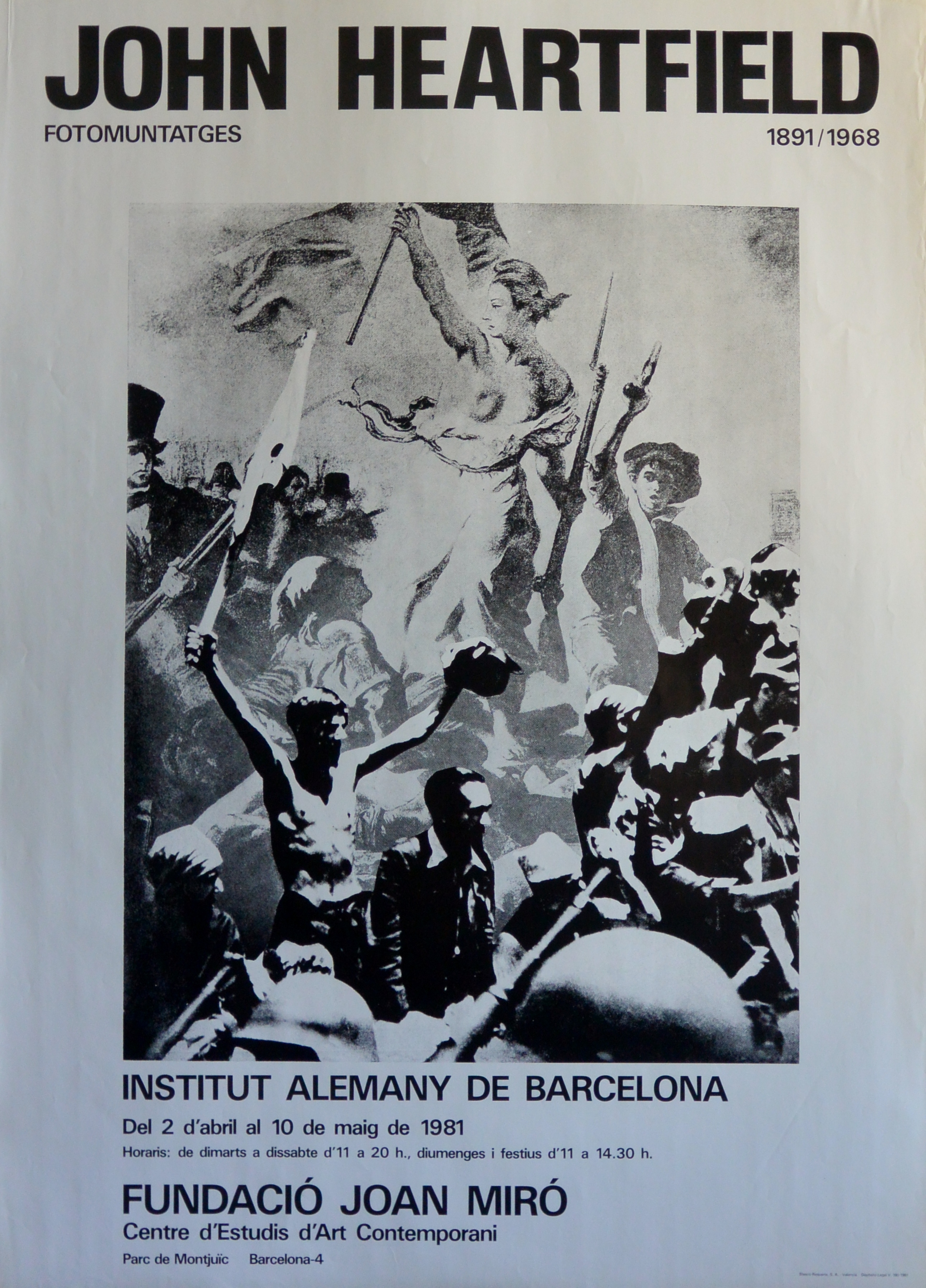 John Heartfield, Fotomontatges, cartel original exposición en la Fundación Joan Miró en 1981, 90×65 cms.