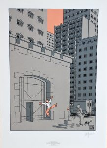 Joost Swarte, Eindelijk Vrijheid!, (Al fin libre!), serigrafía, edición limitada y firmada a lapiz, 70×50 cms.